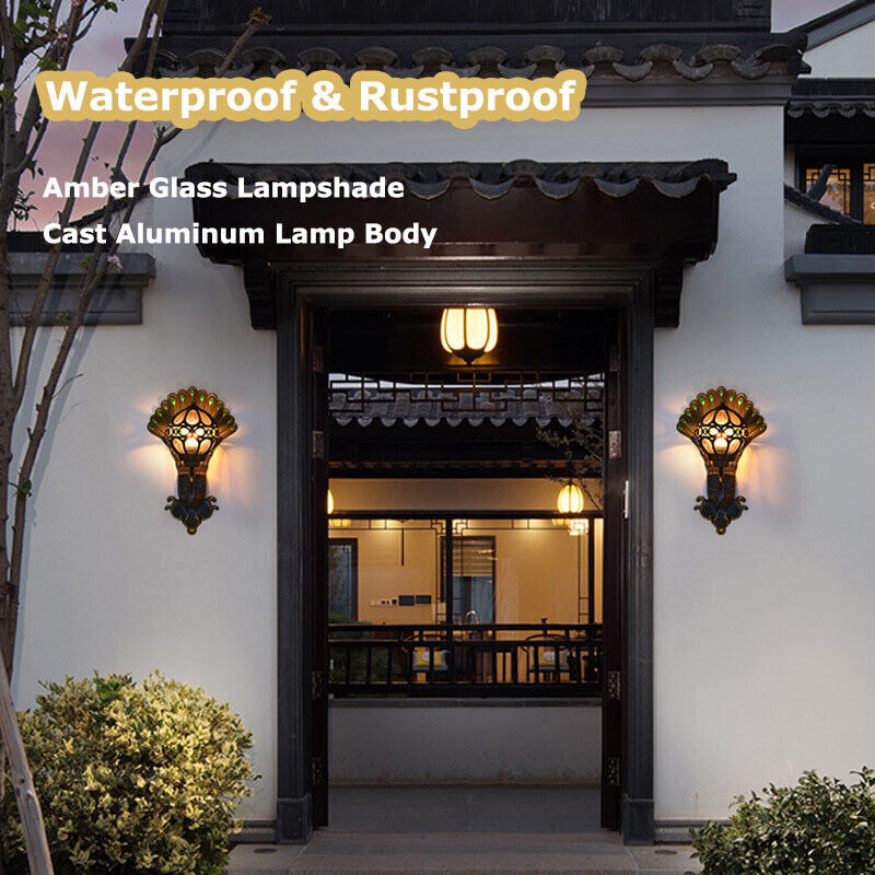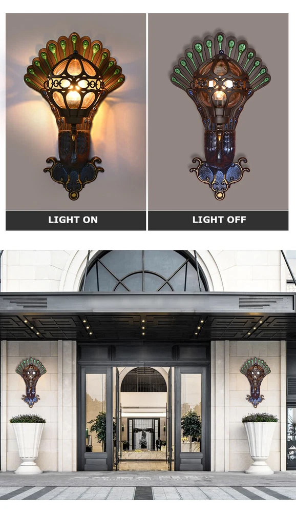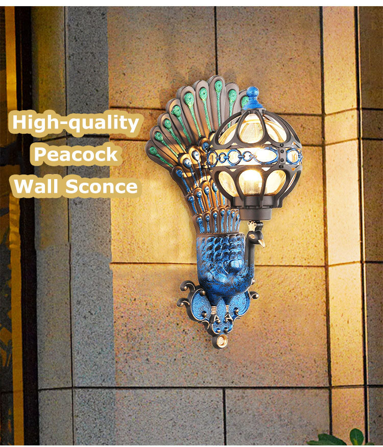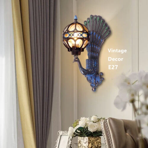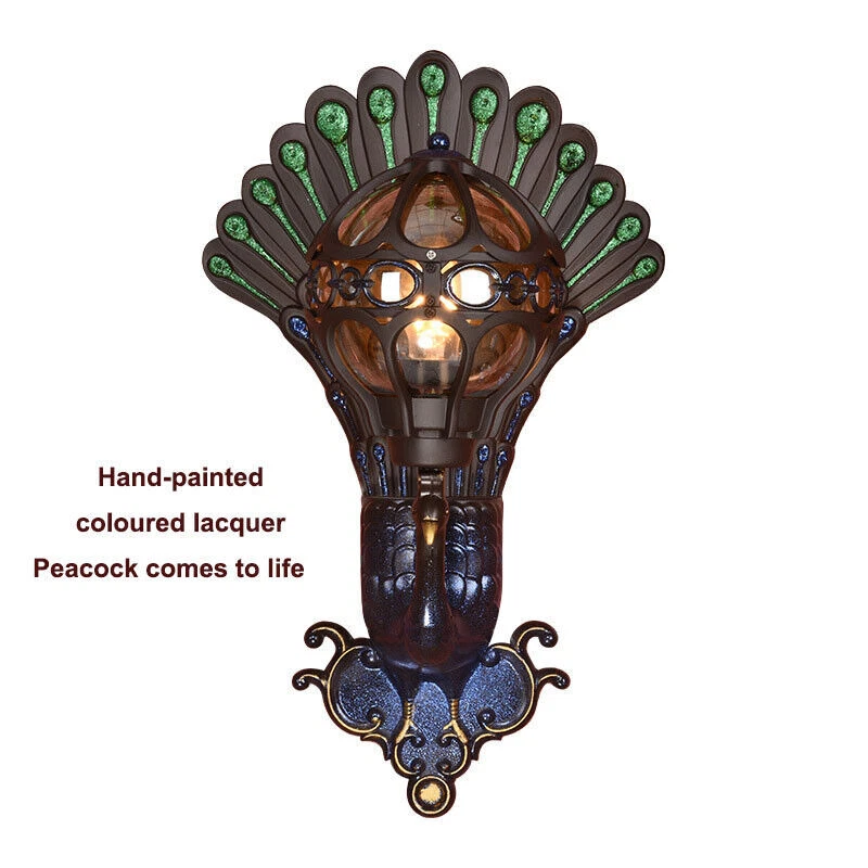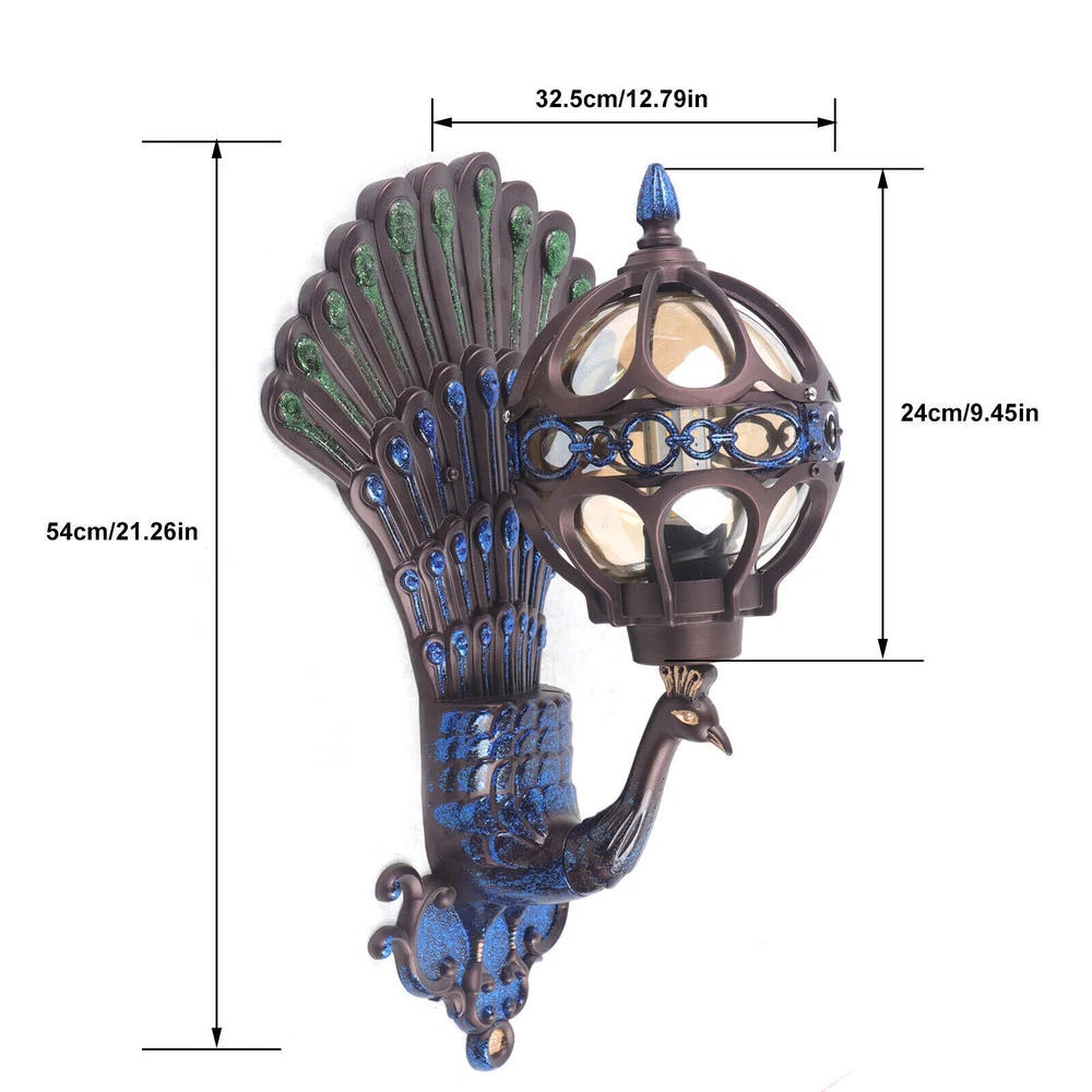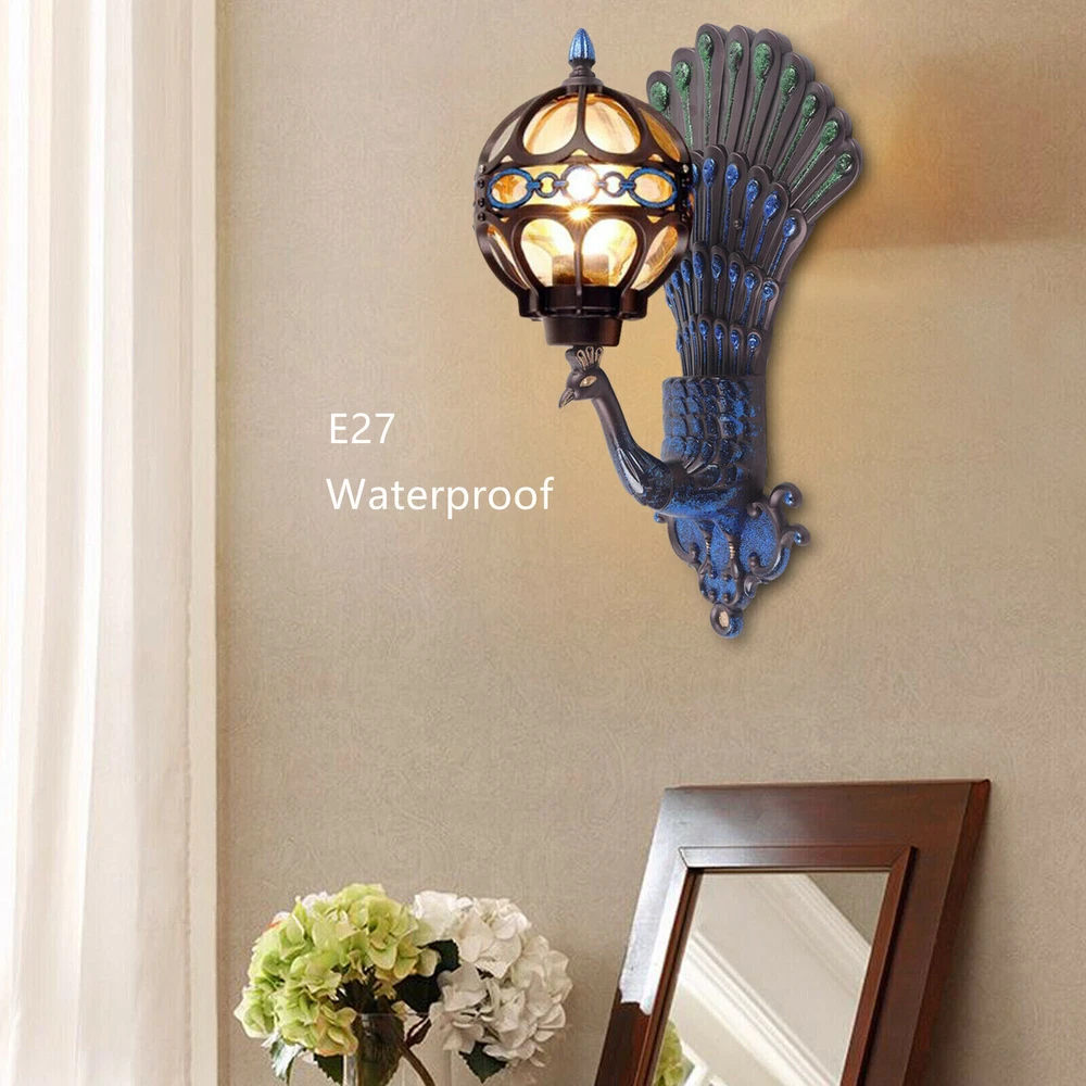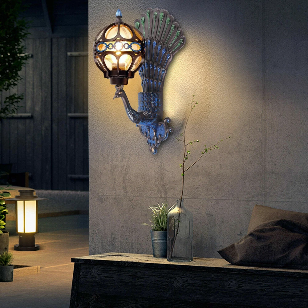 Antique Peacock Wall Sconce Waterproof Vintage Porch Light Fixture