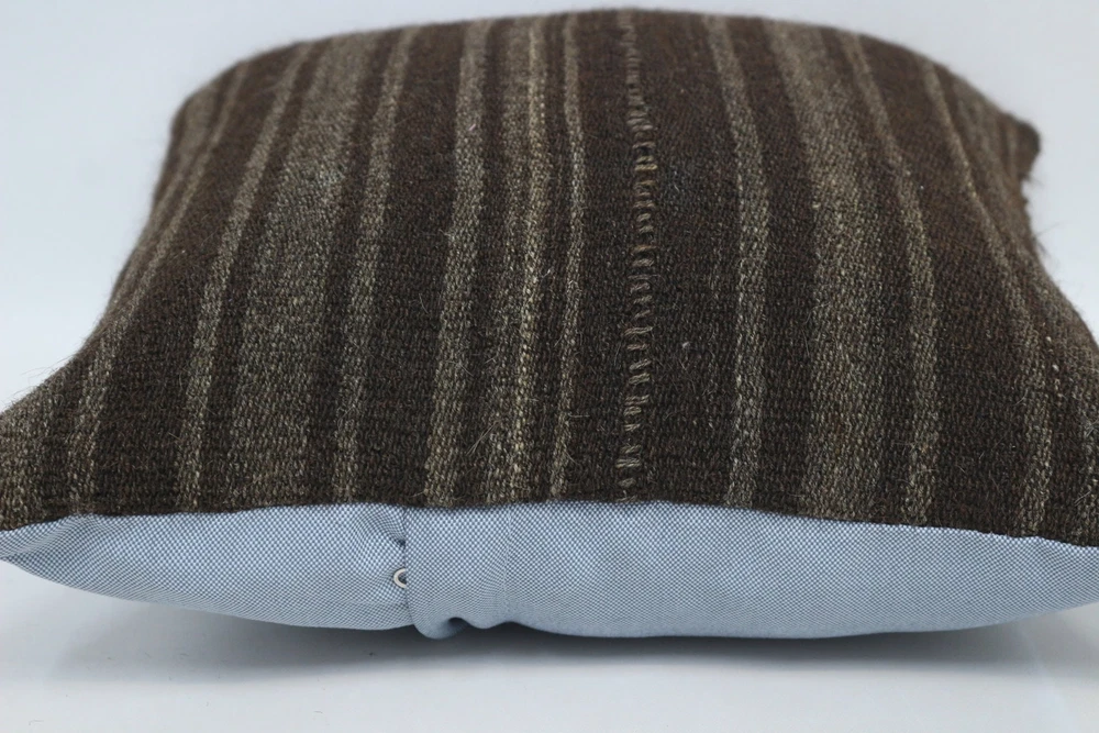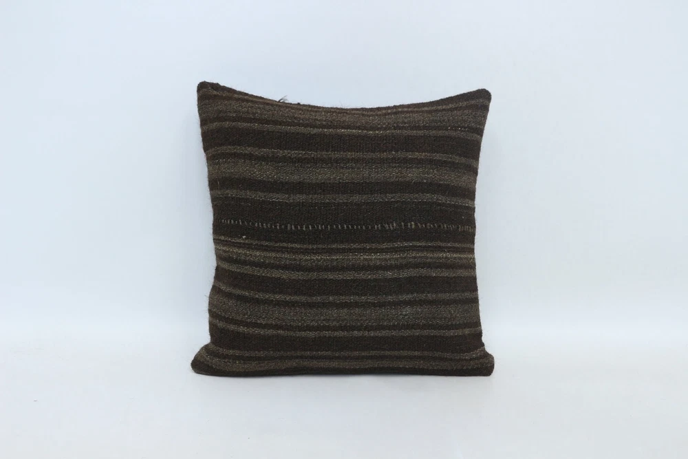 Antique Pillows, Cushion Case, 16"x16" Brown Pillow, Turkish Kilim Pillow