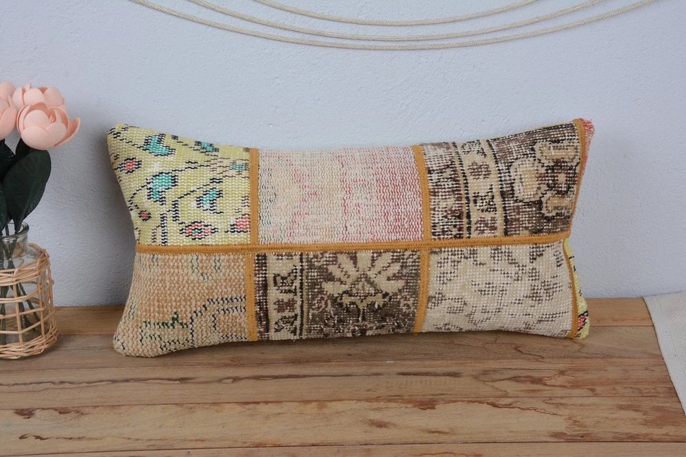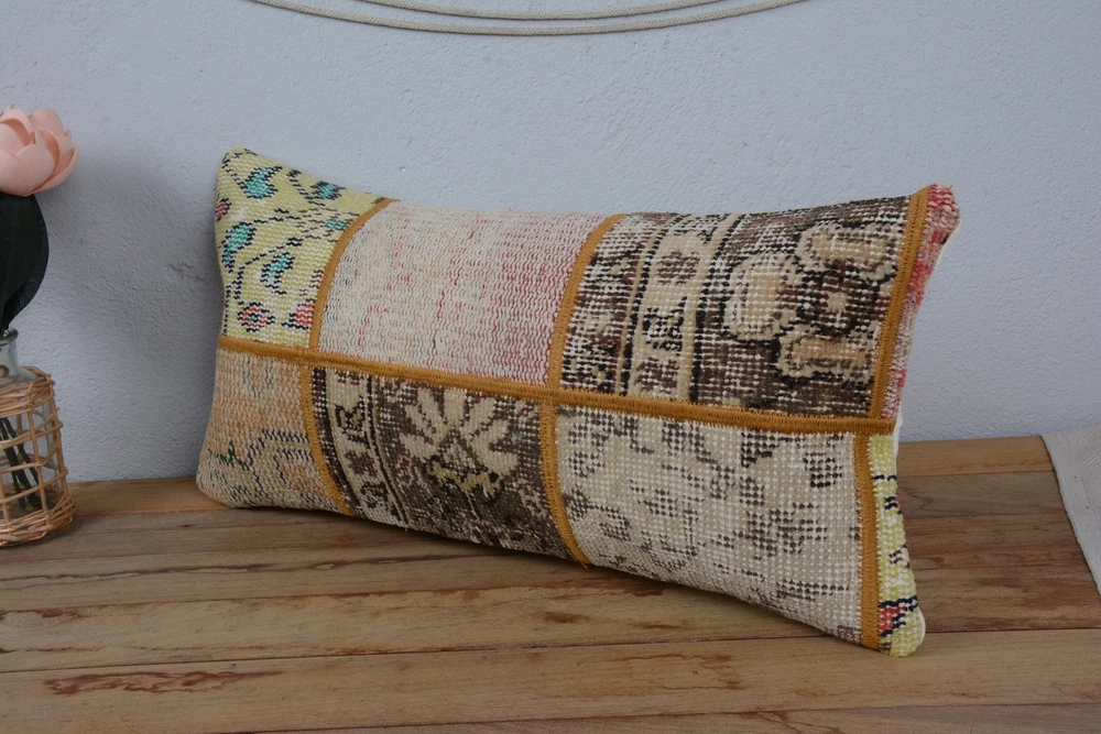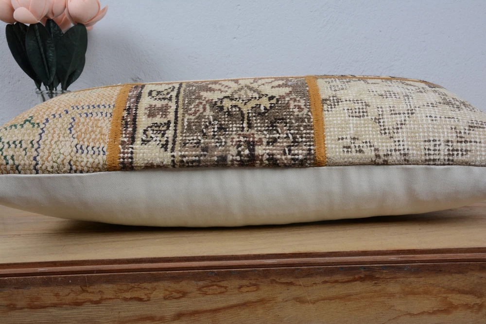 Antique Pillows, Pillow Covers, 12"x24" Beige Cushion, Kilim Pillow Cover
