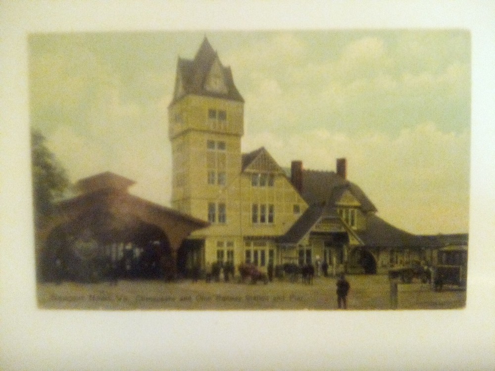 The product is an antique printed postcard featuring the Chesapeake & Ohio Railway Station and Pier in Newport News, Virginia, United States. This single unit postcard is an original piece from the United States, showcasing a picturesque scene of a railway station and pier in the region of Virginia. Perfect for collectors of topographical postcards and vintage memorabilia, this postcard captures a piece of history from the United States' railway industry in the city of Newport News.