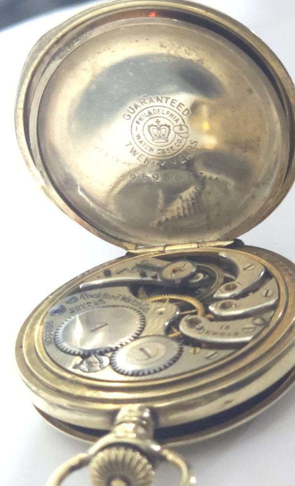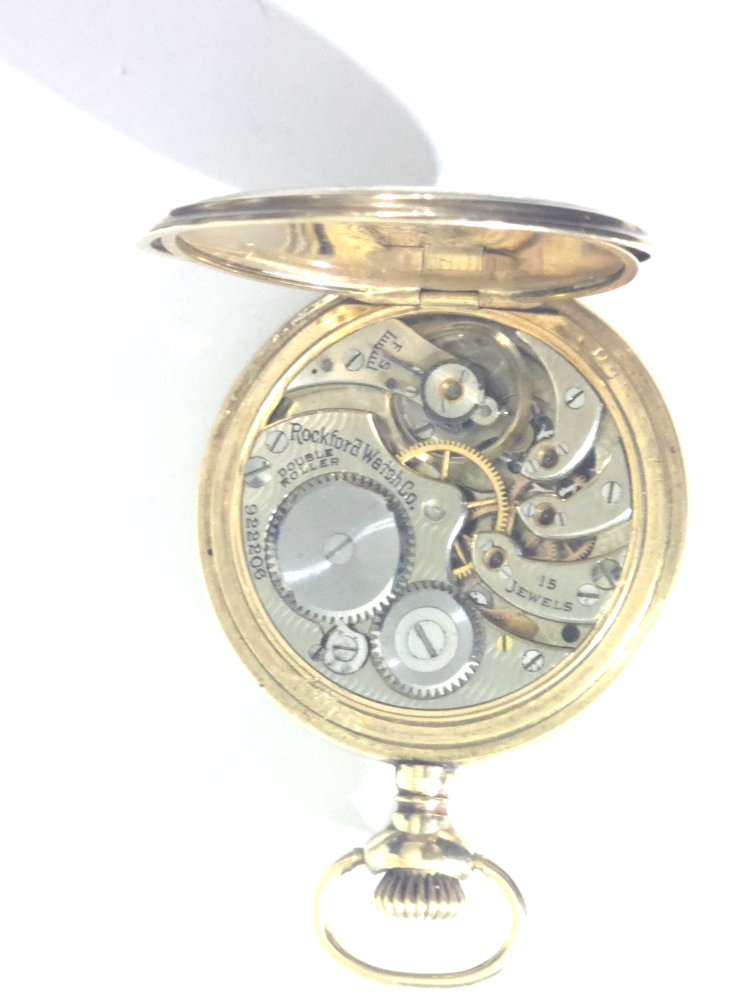 Dial Color: White Department: Men Number of Jewels: 15 Jewels Display: Analog Year Manufactured: 1900-1909 Movement: Mechanical (Manual) Type: Pocket Watch Brand: Rockford Case Material: Gold Filled Features: 12-Hour Dial Seller Notes: “The case does not stay closed. Damage on side of case, watch is running” Case Finish: Polished