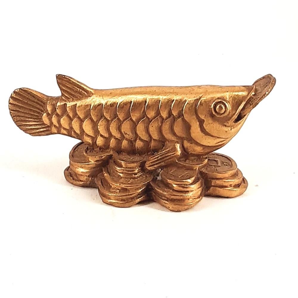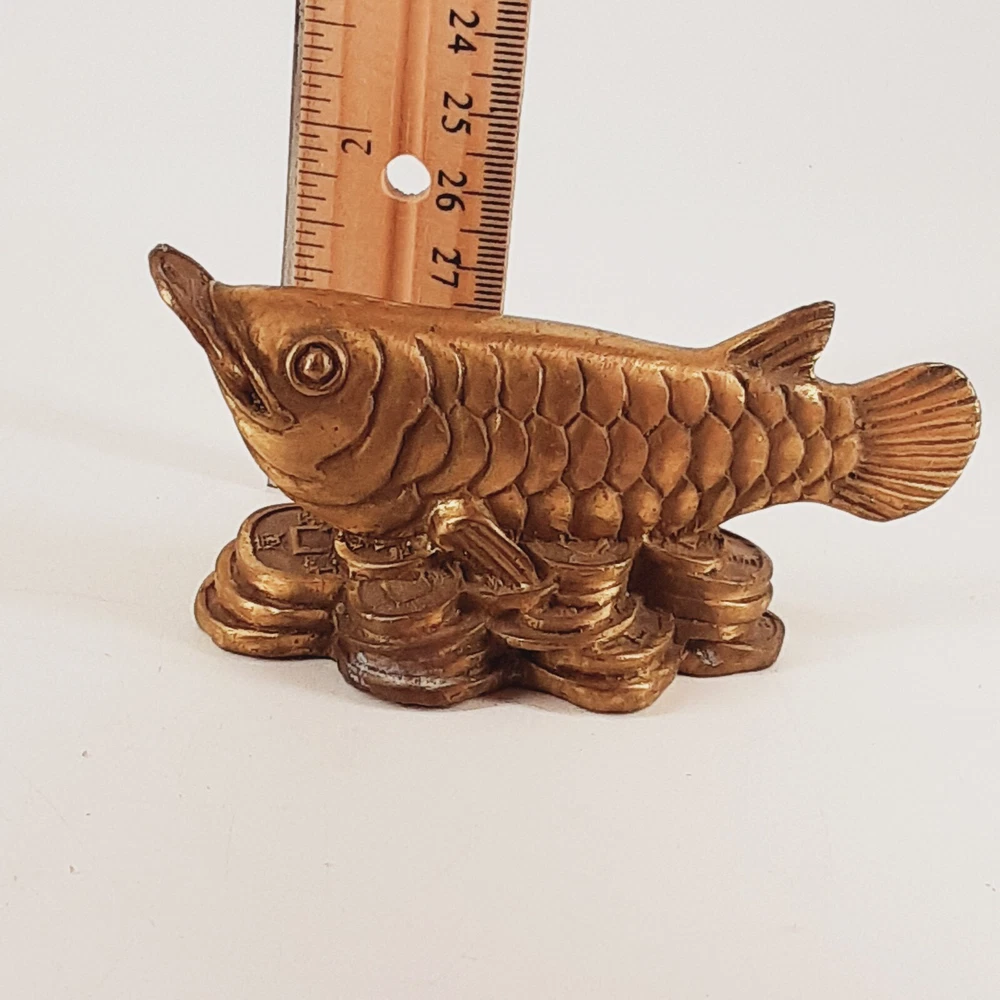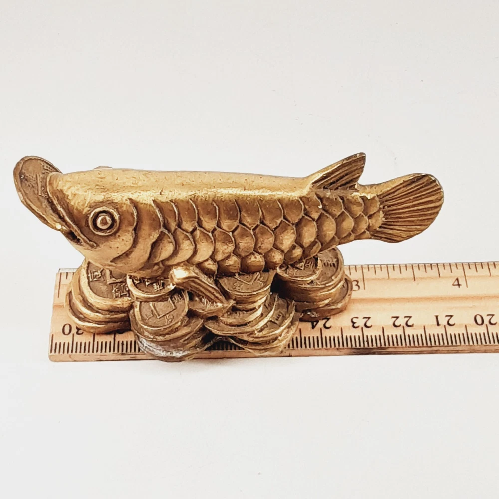 Antique Solid Brass Feng Shui Arowana Wealth Dragon Fish Carp Koi Good Fortune