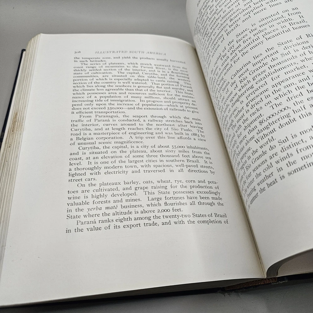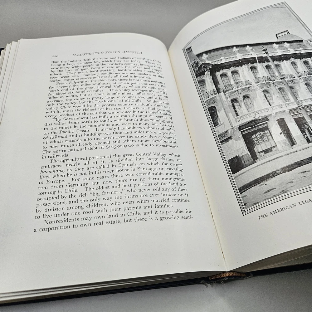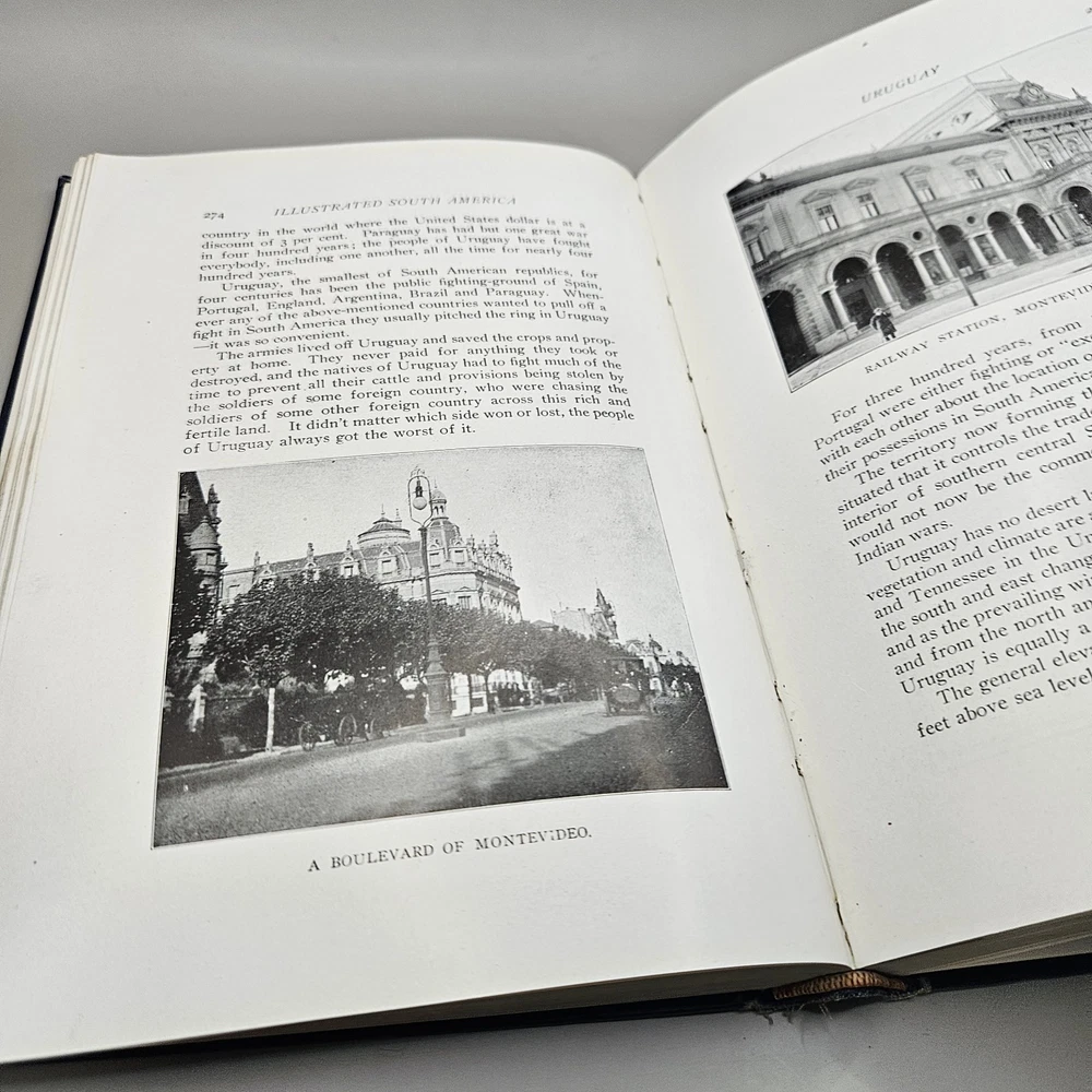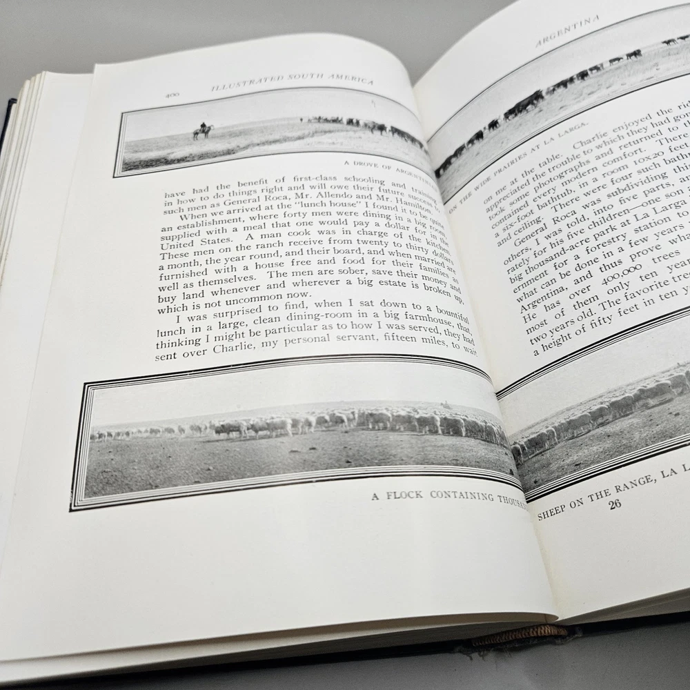 The product is an illustrated travel book from 1912 that focuses on South America, specifically highlighting destinations like Panama, Peru, and Argentina. This antique book provides a glimpse into the travel experiences and perspectives of the early 20th century, making it a valuable collectible for those interested in historical travel literature. With detailed illustrations and narratives about different regions in South America, this book offers a unique insight into the travel experiences of the past.