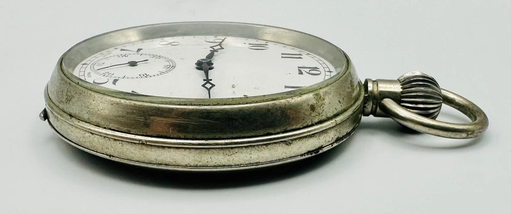 Antique Swiss Made 15 Jewel Pocket Watch - Working Discover a charming antique Swiss-made pocket watch, perfect for collectors of vintage timepieces. This watch features a reliable 15-jewel Swiss mechanical movement , which is stem wound and is currently in working condition , winding and ticking along nicely. The watch presents a classic white dial with clear Arabic numerals and a functional sub-seconds dial at the 6 o'clock position. The case is made of a durable white metal , offering a timeless antique aesthetic. This is a wonderful opportunity to own a piece of horological history, ideal for display or daily use for those who appreciate antique craftsmanship. Key Features: Swiss Made Movement: Features a 15-jewel Swiss mechanical movement. Working Condition: The watch is fully functional, winding and ticking nicely. Stem Wound: A traditional and desirable winding mechanism. Classic Design: White dial with Arabic numerals and a sub-seconds hand. White Metal Case: Robust and durable, with a classic antique appearance. Generous Size: Measures 49.7mm in case diameter. Condition: This antique pocket watch is in good working condition for its age. The white metal case exhibits some tarnishing and general surface wear, consistent with an item of this vintage. Please note that the rear case lid has been initialled , adding a unique touch of personal history to the piece. The dial appears clean and legible. Please examine the detailed photographs carefully, as they form an integral part of the description and best illustrate the item's exact condition. Markings: Movement: "15 JEWELS SWISS MADE" Dial: "SWISS MADE" Inner Case: "38575" Rear Case: Has been initialled Dimensions: Case Diameter: 49.7mm (approximately 1.96 inches). Add this charming antique Swiss pocket watch to your collection today! As usual, this item will be packaged carefully and dispatched with tracking. International shipping is available upon request.