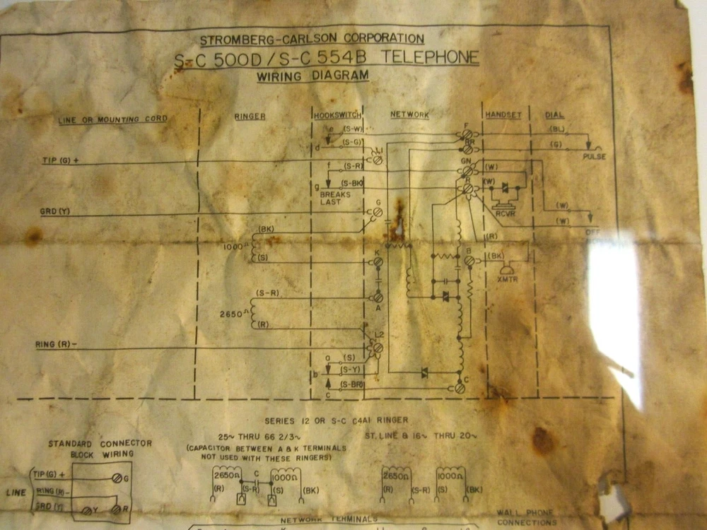 Wiring Diagram. Stromberg-Carlson Telephone. Models 500D and 554B, rotary dial home units. 1970. Thank you.