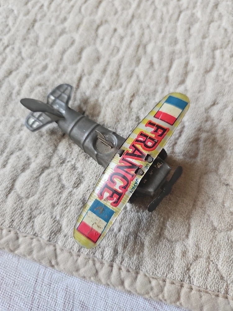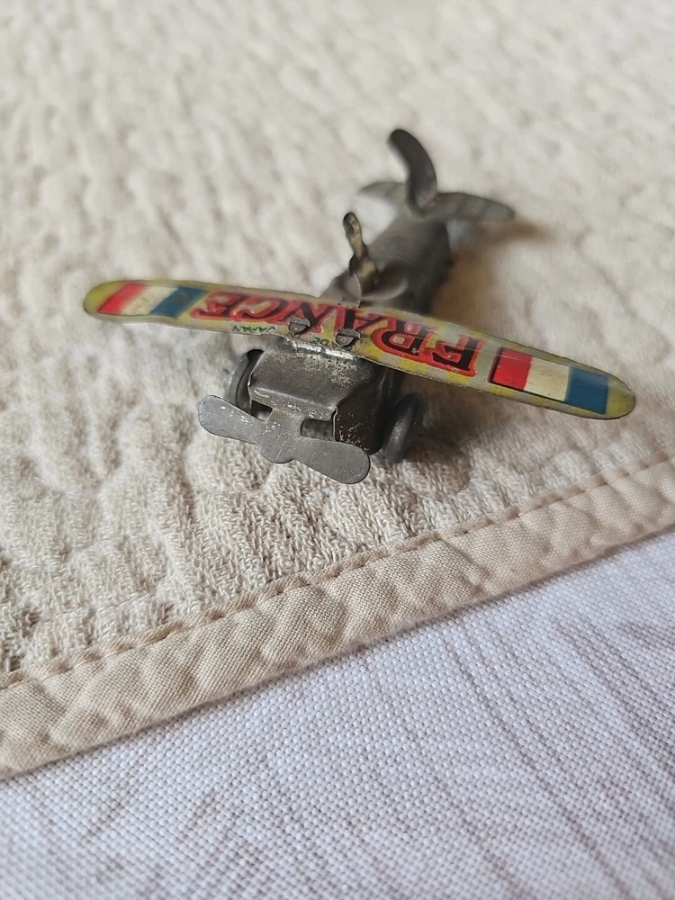 This antique tin toy France Plane from the 1930s is an extremely rare find for collectors and enthusiasts alike. Made of high-quality tin material, this vintage toy is a perfect addition to any collection. Its detailed design and intricate features make it a unique piece that stands out from the rest. The plane is a great representation of French aviation history and is sure to captivate anyone who sees it. Its age level is recommended to be 4-7 years, making it a perfect gift for children who appreciate vintage toys. This item is a must-have for anyone who loves collecting antique toys and wants to add a unique piece to their collection.