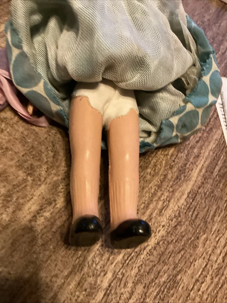 This antique doll is an unmarked bisque doll originating from Germany. It stands at 15 inches tall and comes with clothing that is believed to be original to the doll. The doll is a part of a set that includes just the doll itself. With its bisque material and originality, this doll showcases the fine craftsmanship and design of German doll makers from the past.