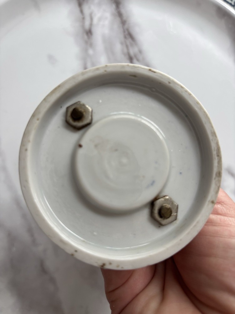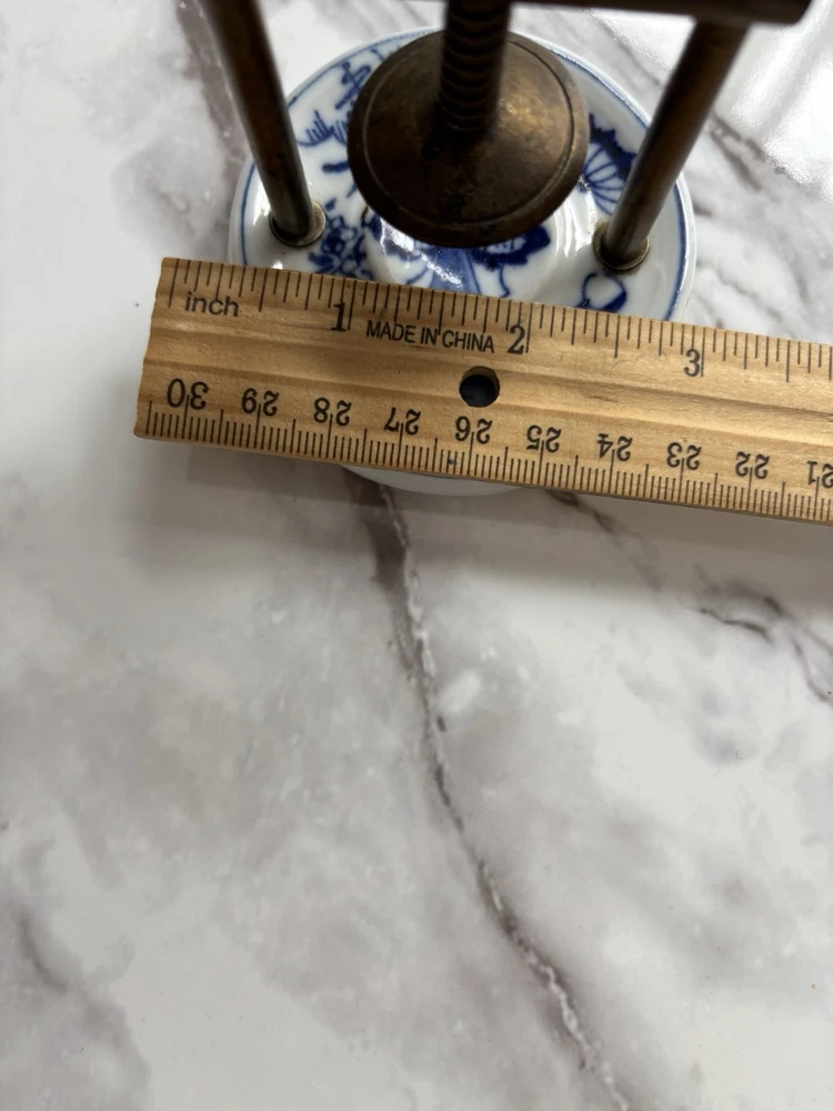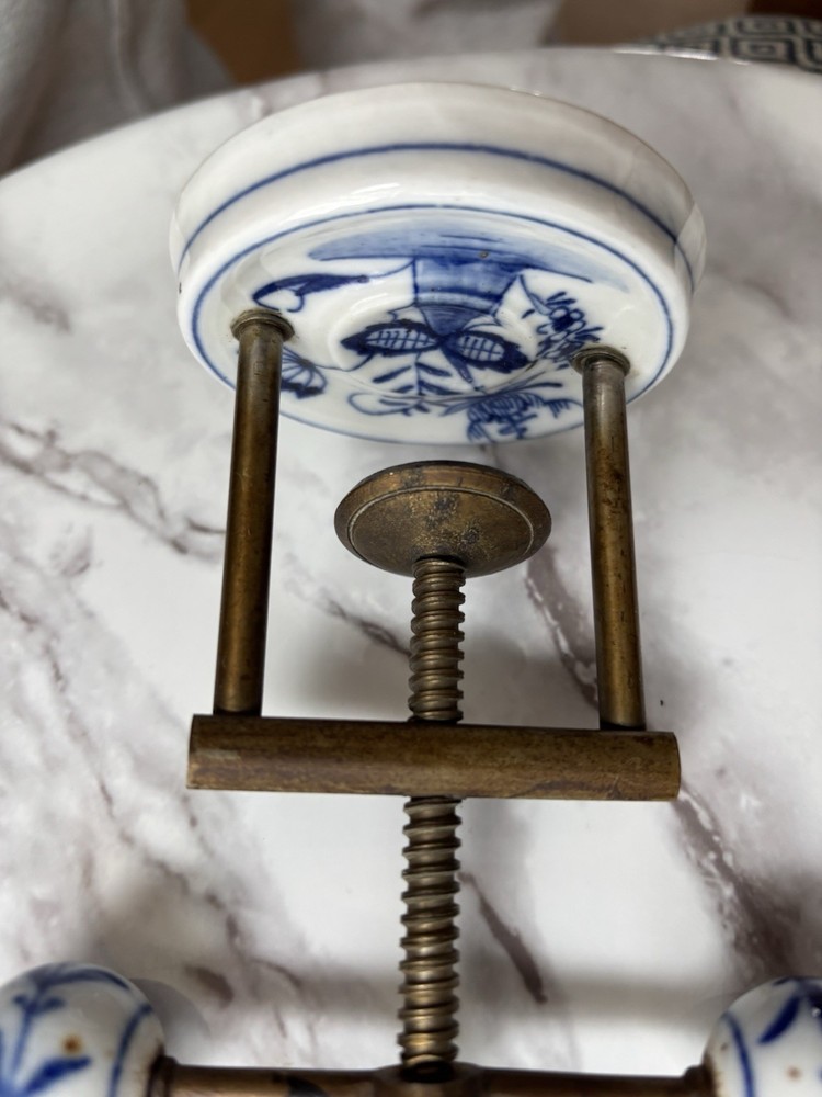 This Antique Victorian Nut Cracker from the 1800s is a unique and charming collectible item and still functions. Made of porcelain and metal, this blue and white nutcracker measures 5 inches in height. With its Victorian style and original design, this piece is sure to add a touch of vintage elegance to any decor. This nutcracker is a special find for collectors of rare and historic items.