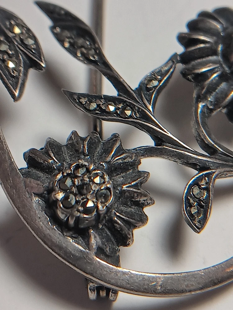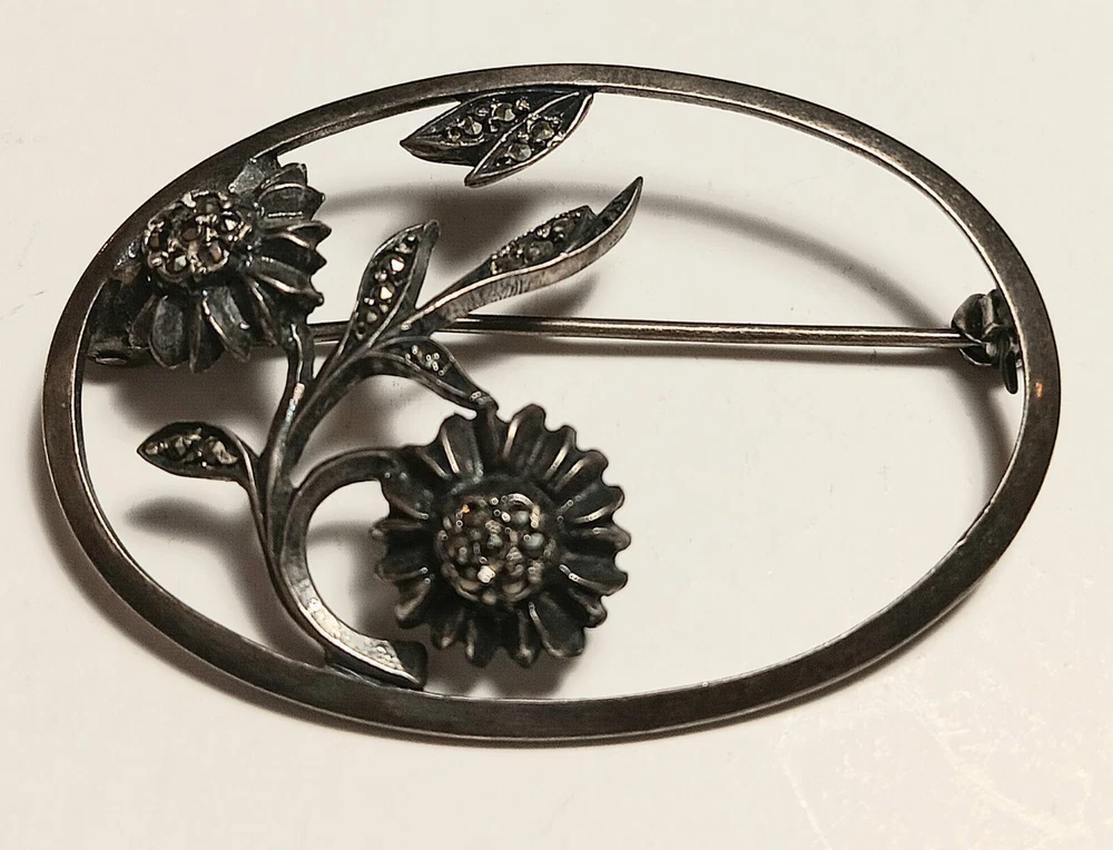 Jewelry Department:FineOriginal/Reproduction:OriginalColor:silver and graySecondary Stone:noneAntique:YesMain Stone Shape:RoundShape:oval and flowersMain Stone Color:GrayType:BroochEra:Victorian (1837-1901)Vintage:YesMetal Purity:835Brand:BRDepartment:WomenMetal:SilverMaterial:StoneMain Stone:Hematite