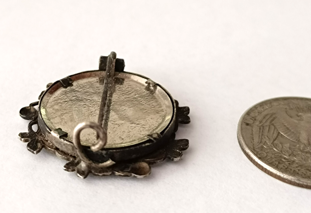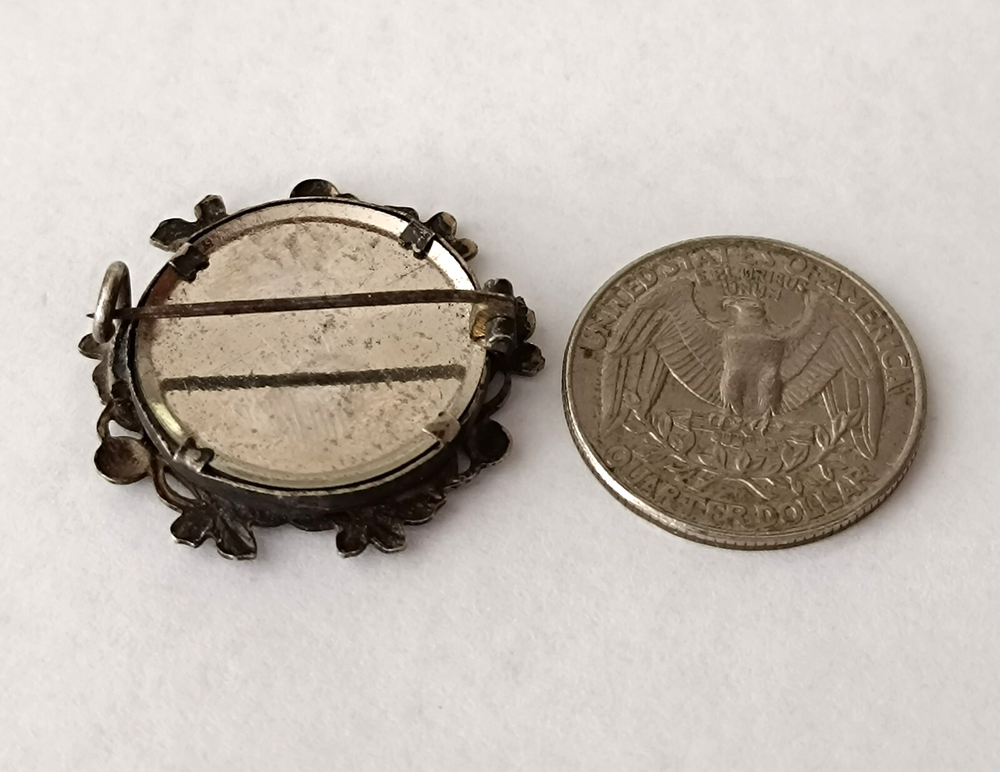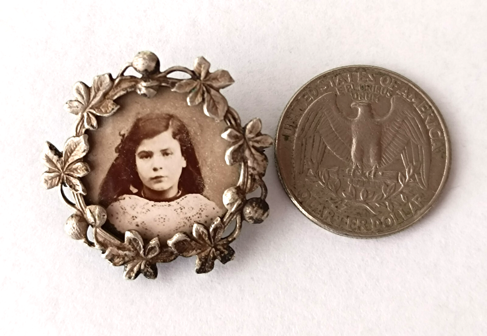 Charming antique photo brooch from the Belle Époque era, circa 1900. Features the portrait of a young girl under convex glass, set in a silvered brass frame with detailed grape leaves — a classic Art Nouveau motif. No hallmarks, old pin clasp. A sentimental keepsake, rare and highly collectible. Diameter : approx. 27 mm Condition : good vintage condition, glass intact, light patina Origin : France Perfect for collectors of antique jewelry, mourning items, and Art Nouveau design. antique photo brooch, mourning brooch, sentimental brooch, Belle Époque jewelry, antique girl portrait, art nouveau brooch, vintage photo jewelry, memorial brooch, antique mourning pin, brooch with photo, under glass portrait, antique framed photo, 1900s brooch, art nouveau leaves, grape leaf brooch, antique pin, French photo brooch, antique keepsake, vintage French jewelry, Victorian mourning, memory brooch, rare antique brooch, girl portrait pin, old French brooch, Belle Epoque keepsake, art nouveau pin, vintage remembrance brooch, antique mourning jewel, Victorian photo pin, enameled photo brooch, hair jewelry, photo memento, wearable photograph, antique jewelry France, antique family brooch, mourning jewelry 1900, art nouveau antique pin, antique souvenir jewelry, collectible photo brooch, sentimental antique jewelry, old brooch with glass, early 1900s jewelry, brooch with leaves, antique girl photo, French antique jewelry, handmade brooch 1900s, memory pin, silvered brass brooch, antique grape leaf brooch, Victorian style brooch, real photo brooch, early portrait brooch, unique mourning jewel, floral art nouveau brooch, Victorian remembrance pin, Belle Epoque mourning jewelry, rare French brooch, real person photo jewelry, vintage under glass brooch, authentic photo brooch, woman’s portrait pin, timeless memory brooch, old fashioned brooch, elegant antique pin, art nouveau sentimental, turn of the century brooch, Victorian sentimental pin, pre WWI brooch, delicate photo jewel, vintage mourning accessory, antique mourning memorabilia, handmade Belle Époque pin, French vintage keepsake, collector’s photo brooch, antique pin with soul, poetic jewelry, artistic brooch, retro style mourning brooch, estate jewelry brooch, 19th century photo brooch, antique memento, rustic vintage brooch, old memory jewelry, ornate mourning brooch, art nouveau girl brooch, small vintage brooch, collectible memory pin, glass covered brooch, wearable mourning art, rare vintage memory pin, emotional antique jewelry, woman’s photo brooch, Victorian era brooch, nostalgic antique pin, French memento brooch, vintage memorial pin