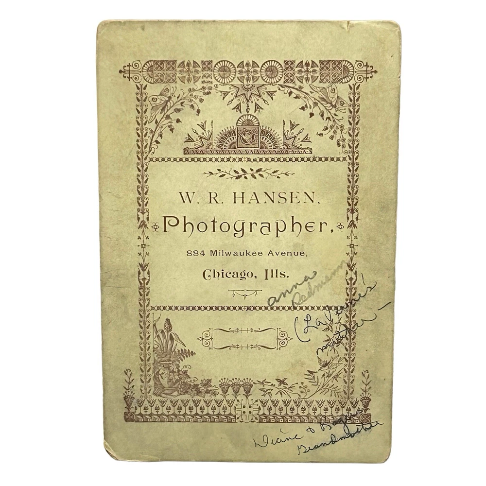 Antique Victorian Cabinet Card Photo Portrait Two Babies Children 1880s Chicago TWO ITEMS Two lovely cabinet cards of children made at the studio of Warren R. Hansen in Chicago and seems to be dated 1888. Looks like relatives were writing on the back to identify. “Do not Copy” stamp not on photos. Items sold as is. Please see all images for further details. Be sure to see all our other items for possible bundle and shopping deals! Will pack with extra care and attention that ephemera items require. Quick shipping guaranteed. Returns accepted at buyer’s expense. Display boxes and props not included unless otherwise noted. Own this lovely pair! We are a reputable seller! Check out our reviews to see what customers say about our products and service. You won’t regret trusting Fairfield for your online purchase.