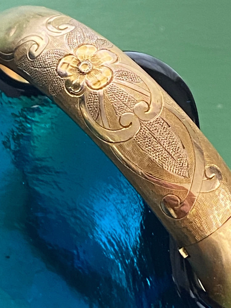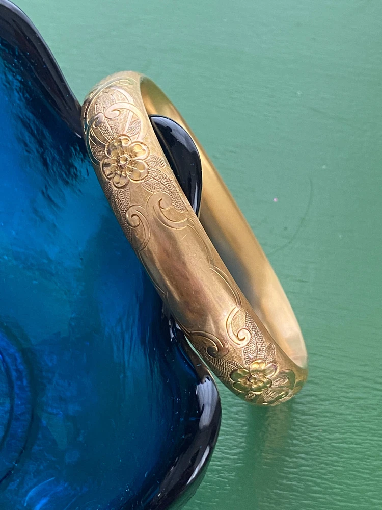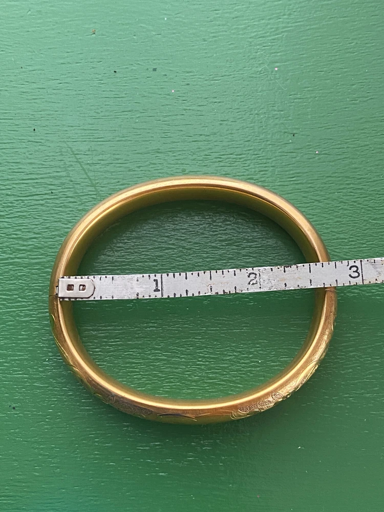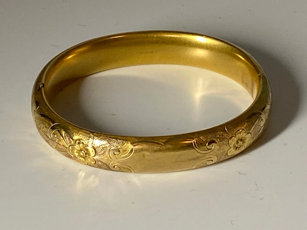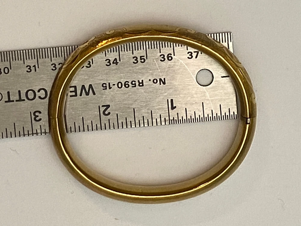 Antique Victorian Circa 1900 Gold Filled,George L Paine, gold, bracelet 1/10, oval The bangle style bracelet features an etched design and is perfect for special occasions such as weddings, anniversaries, and graduations. It also makes a great gift for Mother's Day, Christmas, birthdays, and more. The bracelet is in great shape and is an original piece from the George L Paine Co. brand. Add this exquisite piece to your collection today, one small dent see photos sold as is will clasp and open in great working order. see photos