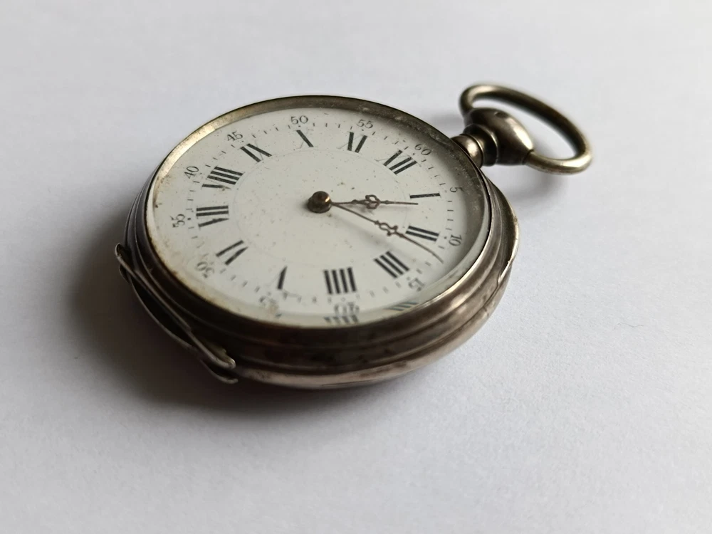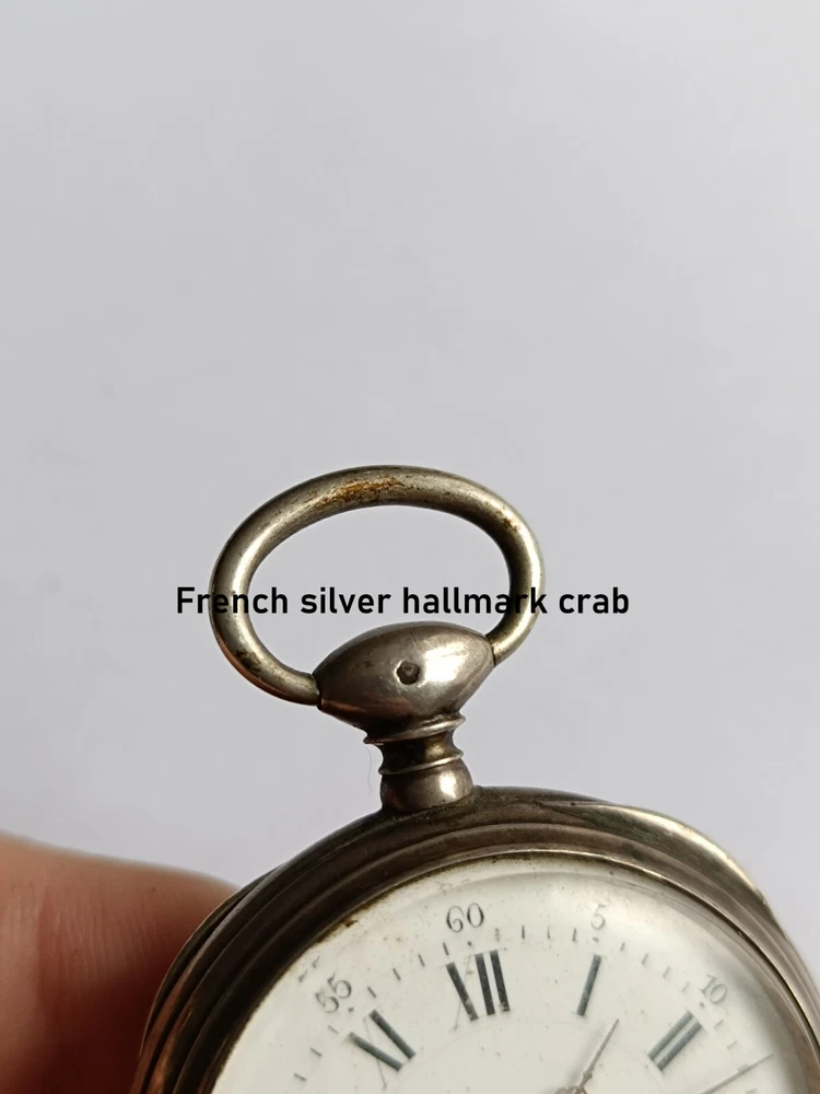 Antique French silver pocket watch, 45mm, hallmarked with the French Crab mark. Features a Cylindre movement with 10 rubis, finely engraved case, and a Roman numeral dial with original hands. The mechanism needs servicing. Doesn't work. A rare and collectible piece. antique pocket watch, silver pocket watch, vintage pocket watch, French watch, Cylindre movement, 10 rubis watch, hallmarked silver, collectible pocket watch, Roman numeral dial, Art Nouveau watch, Victorian watch, French antique, rare pocket watch, silver timepiece, manual wind watch, hand-engraved watch, pocket chronometer, 19th century watch, steampunk watch, silver fob watch…