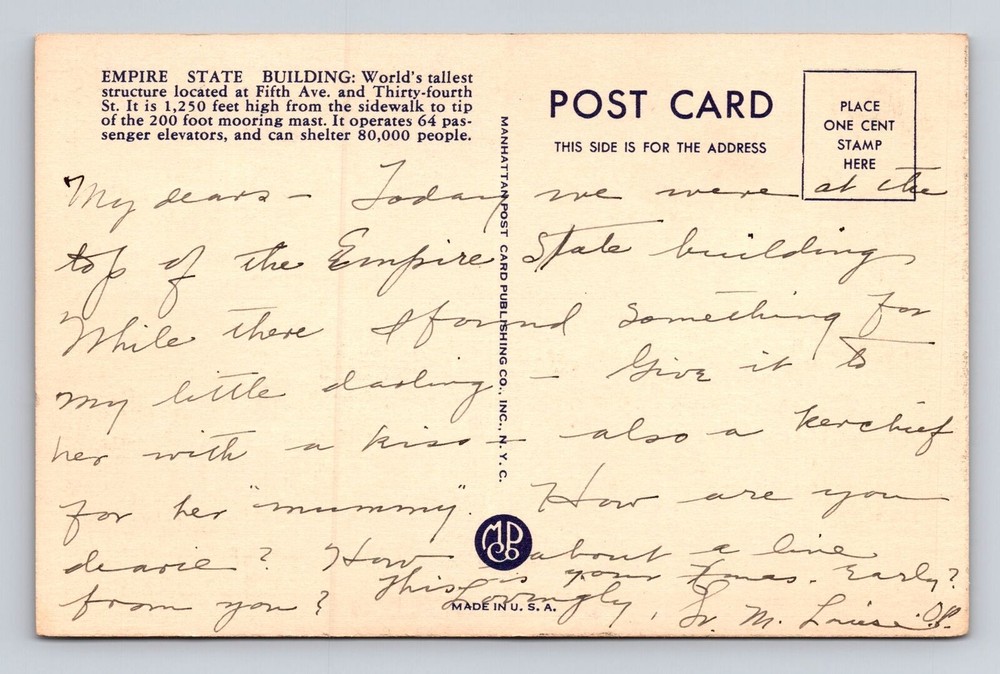 Antique Vintage Empire State Building NYC Souvenir Postcard