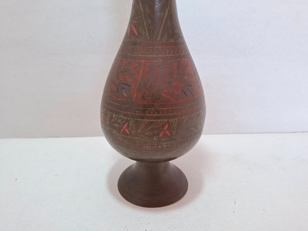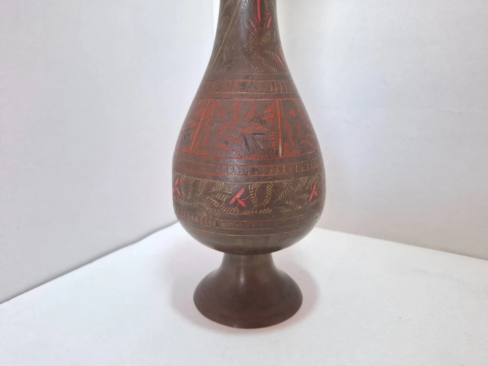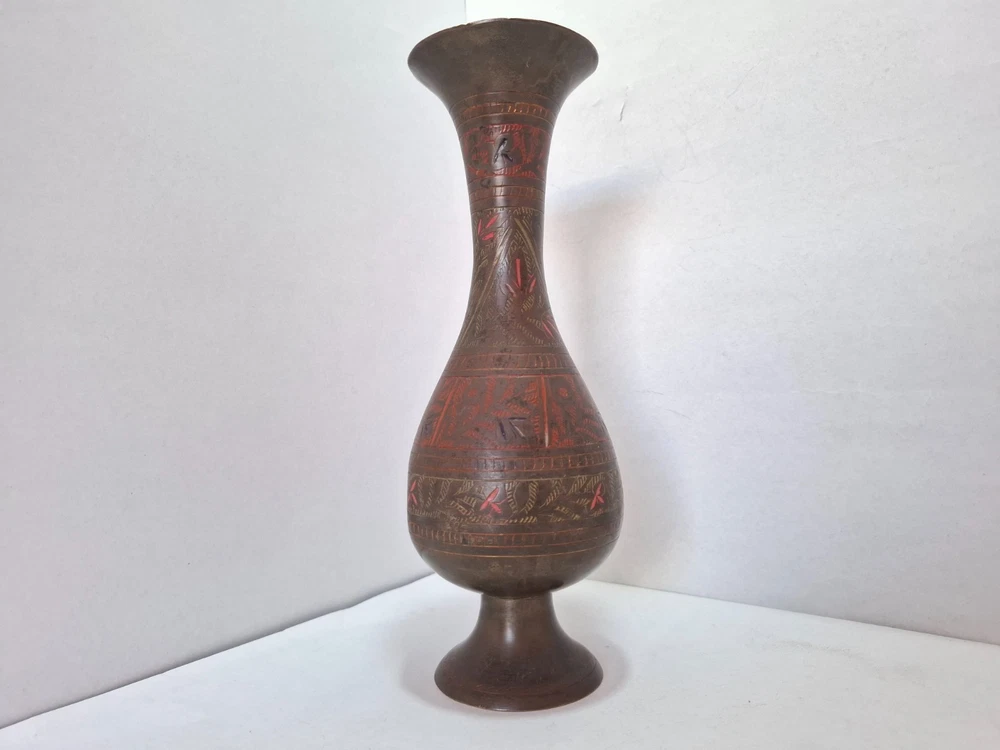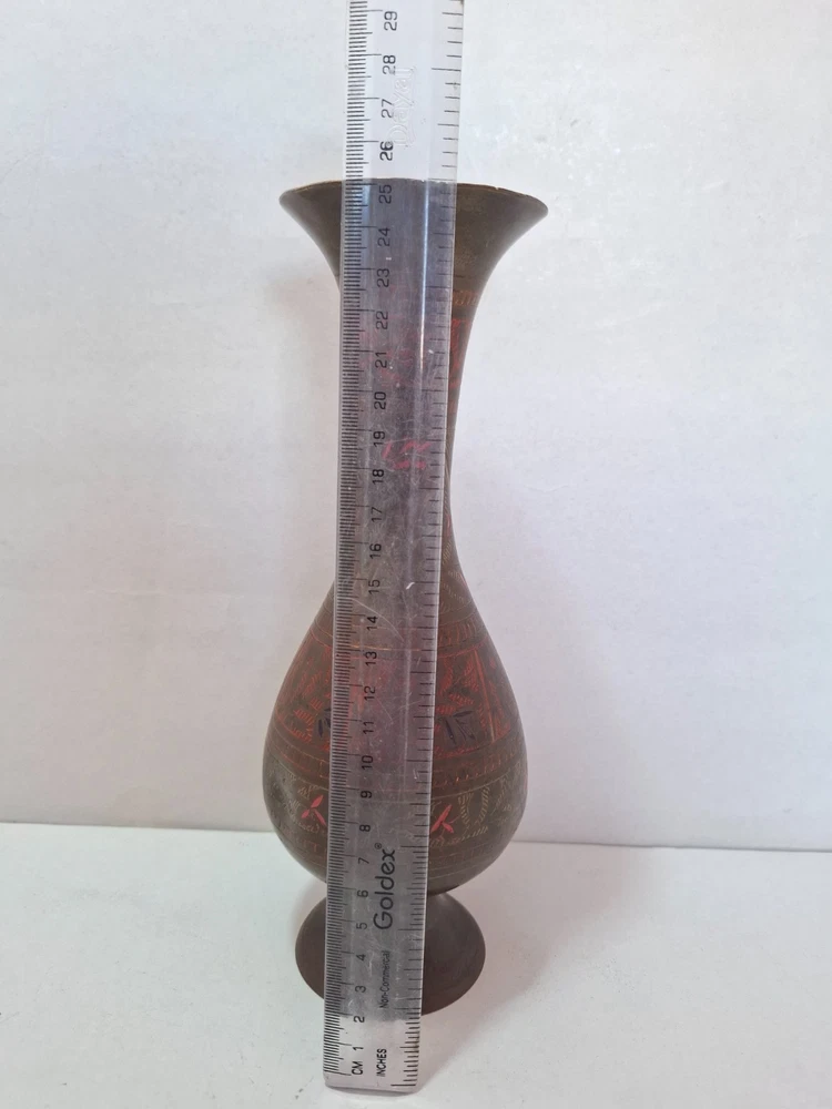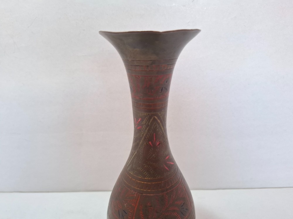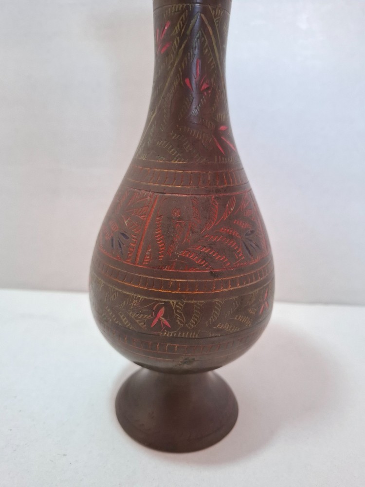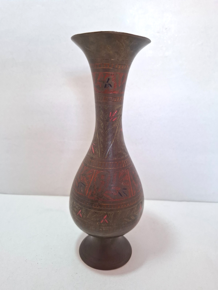 Antique Vintage Engraved Floral Brass Vase India. This antique vintage engraved floral brass vase from India features a round shape and a medium size, making it suitable for all occasions. The vase is crafted with brass material , with an antique brass finish adding to its charm. Handmade in India , this original piece showcases intricate etched floral patterns, making it a unique and timeless decorative collectible for any home. E b A Y Welcome and we promise to provide the best always. CONTACT US Please feel free to contact us. We are available 24 hours. If you have any questions or inquiries about any product offered ,You want to buy and know more details about it. Payment -We recommend payment via paypal. - Items will be shipped once the payment has been received. Shipping Item will be shipped immediately on the same or next business day of receiving clear payment. We will ship the product to you by mail Or international shipping companies with the tracking number. handling time 1-3 Business day. If you buy more i can combine shipping. We are very committed to the implementation and seriously to deal with you. Rutern policy You can return the Item within 30 days of receiving it , And get your money back immediately or exchange it for another item if you like,but you will pay for the shipping. Feedback Just as I give positive feedback for you (buyer) please you give me positive feedback. In any case of a problem contact me before put feedback. So I will do my very best to resolve any problem, and to make you satisfied. Notes See photos for more details & actual condition as photos are also part of description. Please note that the color of the items may vary slightly due tolighting during photo shooting or the monitors display. Thank you for shopping