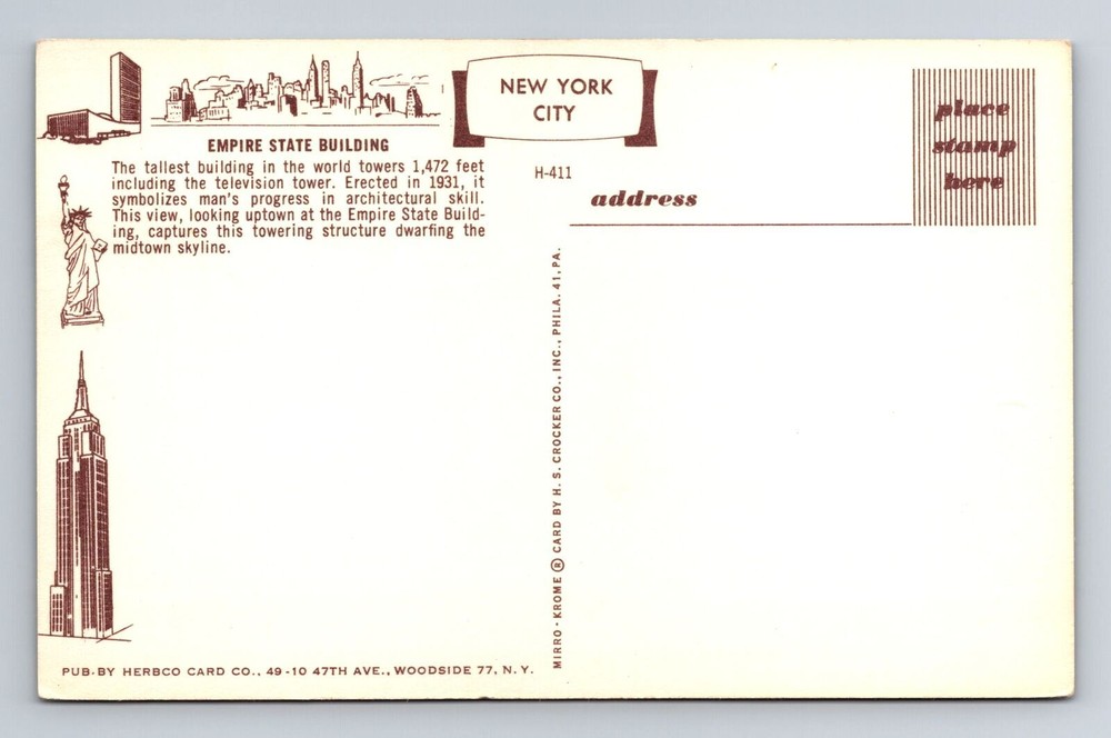 Antique Vintage New York City Empire State Building Postcard NY