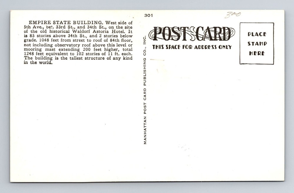 Antique Vintage Postcard of NYC Empire State Building on 5th Ave