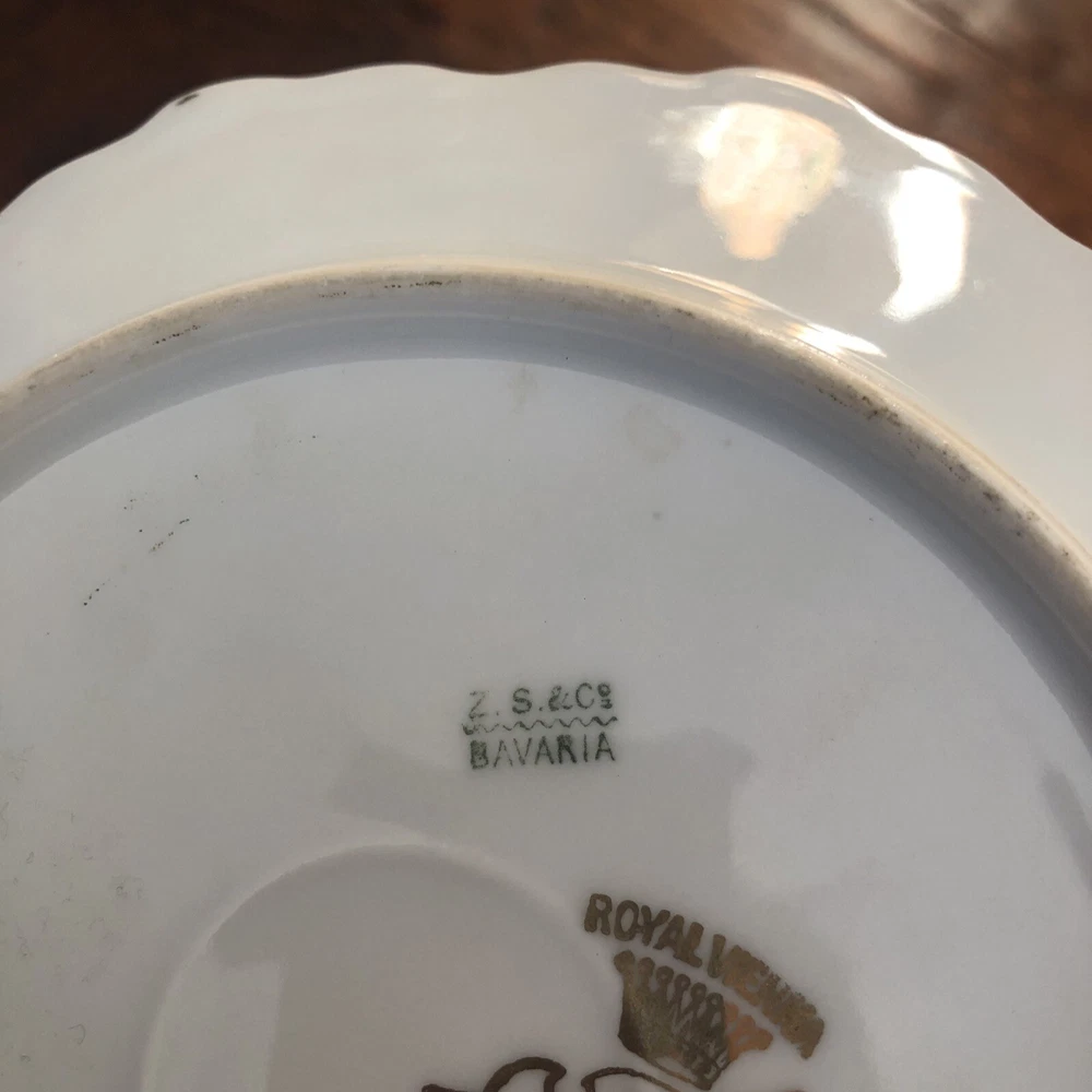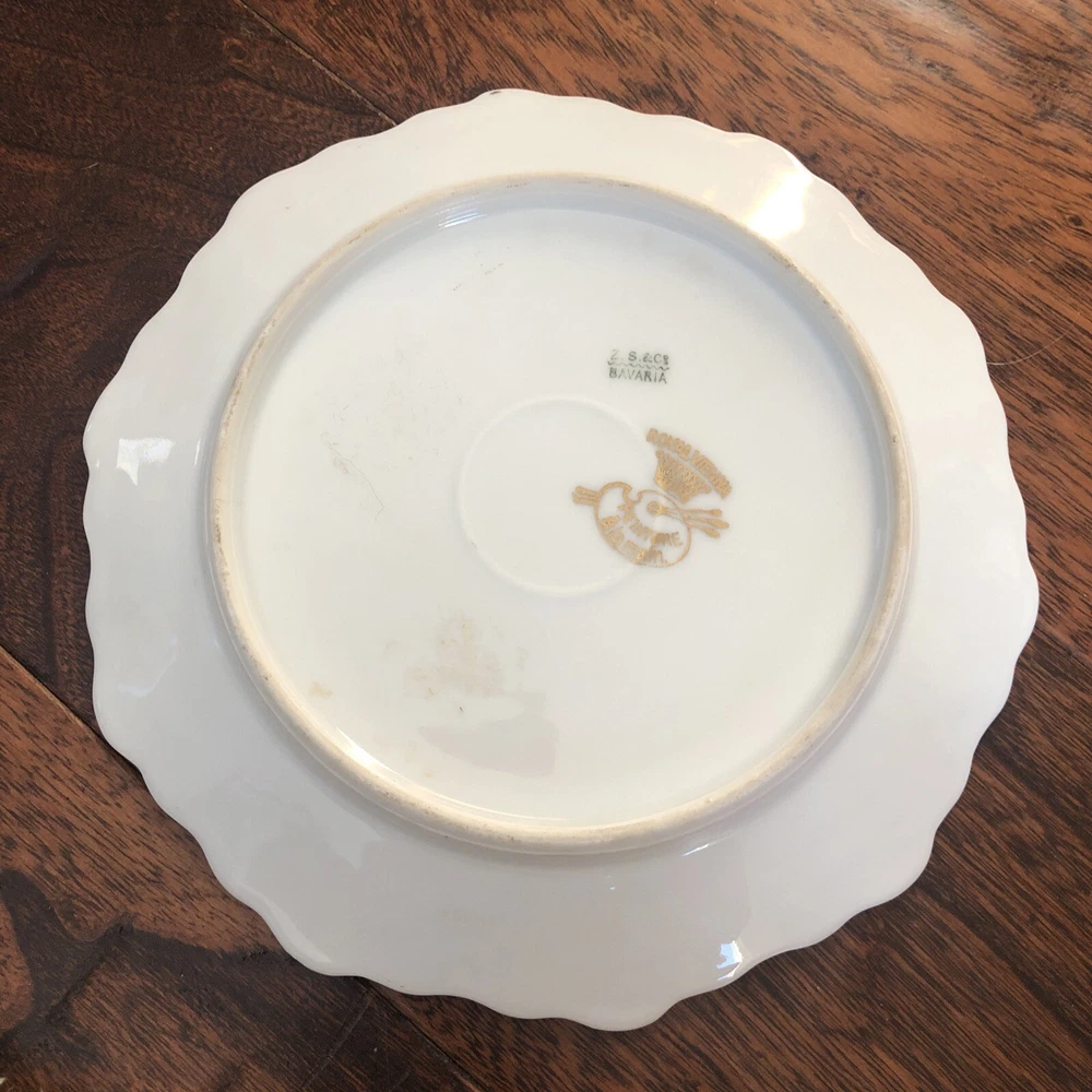 This is an antique Z S & Co collector plate from Royal Vienna, featuring hand-painted roses on a round porcelain plate measuring 6.5 inches in diameter. The plate is signed by the artist Fourel and is of Edwardian era vintage, produced in Germany using art pottery techniques. This decorative piece reflects German culture and is a handmade item with intricate detailing. Plate is no chips, no cracks. 6.5” diameter. Thanks