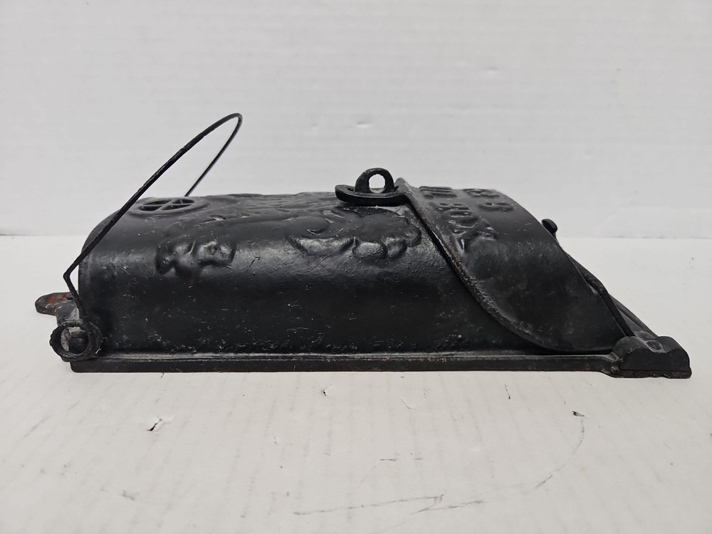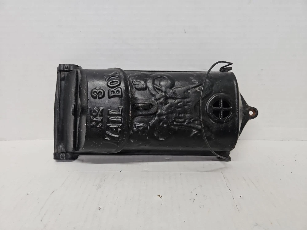 The Antique Mailbox Cast Iron #3 in Black is a medium-sized mailbox made of durable cast iron. It features one compartment with a lockable design, suitable for residential use. The mailbox comes with an indicator flag and weighs 5 pounds, making it sturdy and reliable. The antique style mailbox from the brand Griswold includes all necessary fixings for wall mounting, adding a touch of vintage charm to your home or garden.
