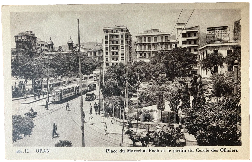 Antique postcard: Oran, Algeria: Place du Marechal-Foch & the Cercle des Officiers Garden. Unposted, excellent condition. My grandfather bought this in 1906. He was in the US Navy from 1904 to 1907.