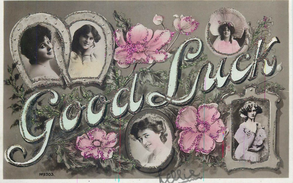 A1 Lot 2 antique postcards silver print novelty new year good luck ladies greetings