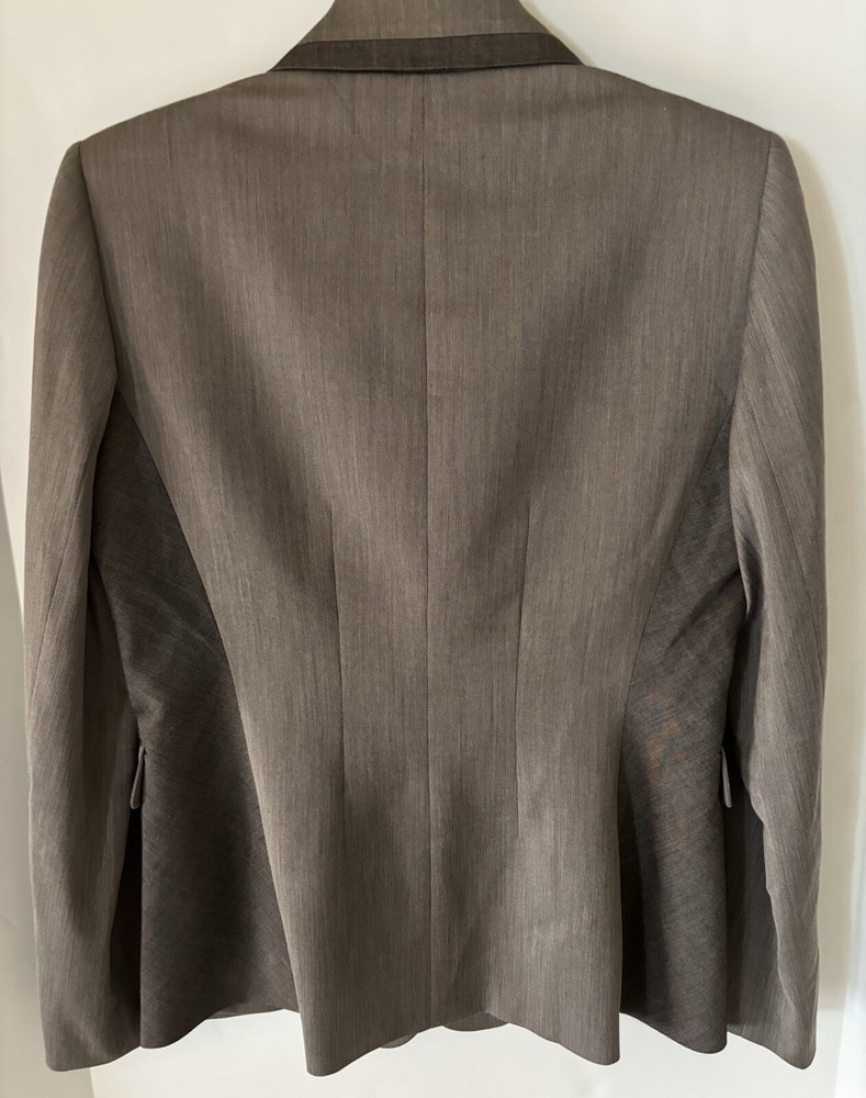 Elevate your wardrobe with the Antonio Melani tailored jacket, a versatile piece that seamlessly transitions from business to cocktail hours. The pewter color adds a touch of sophistication, while the polyblend outer shell ensures durability and a comfortable fit. Size 6 with a chest measurement of 36, this mid-length jacket is designed to flatter with a regular fit and tailored seams.Crafted with a softshell fabric, the jacket promises to keep you comfortable across seasons—fall, spring, and summer. Long sleeves, a classic button closure, and a solid pattern maintain a sleek, uncomplicated aesthetic. Ideal for those who appreciate a blend of glamour and leadership themes in their attire, this jacket requires dry clean care to maintain its sharp look.