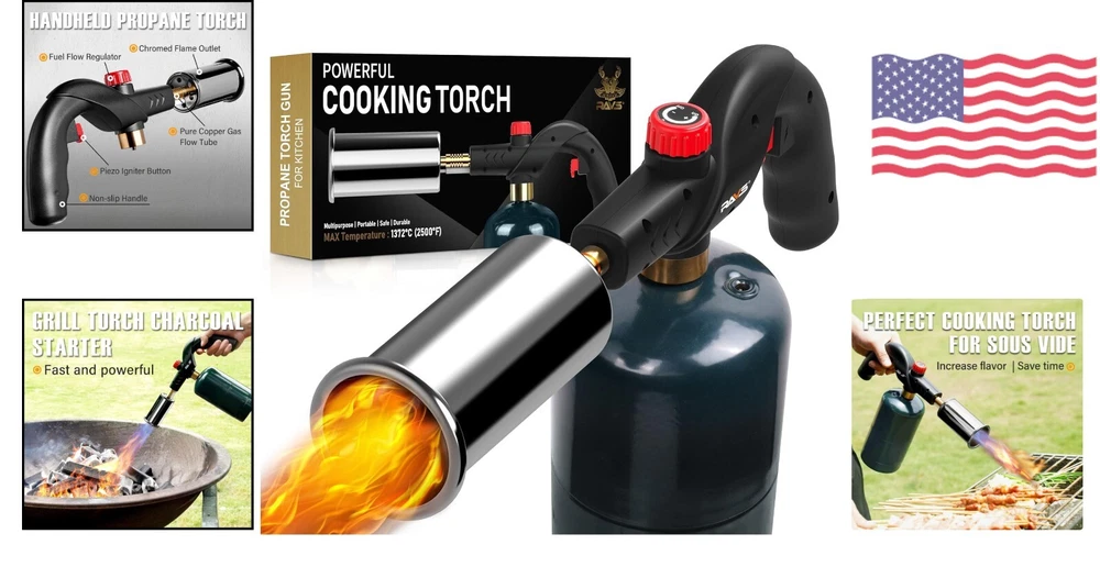 Propane Cooking Torch - Powerful Searing Torch for Sous Vide, BBQ Grill & More ‹ › ‹ › ‹ › ‹ › ‹ › ‹ › ‹ › ‹ › ‹ › ‹ › ‹ › Propane Cooking Torch -Powerful Searing Torch for Sous Vide, BBQ Grill & More Features: Portable and durable design Chromed flame nozzle for heat resistance and durability Thickened pure copper gas flow tube for quick heat dissipation Adjustable flame control for different cooking needs Multi-purpose kitchen torch for professional cooking and everyday use Powerful extra-large flame for easy searing Easy one-touch piezo ignition 2-year warranty for peace of mind Benefits: Portable and convenient for on-the-go use Durable construction for long-lasting performance Safe and easy to use with one-hand operation Adjustable flame control for precise cooking Versatile tool for a variety of cooking and DIY applications Wide flame coverage for quick and efficient searing Includes detailed instructions for easy use and storage 2-year warranty for added peace of mind Why choose our Propane Cooking Torch? Upgrade your cooking experience with our powerful Propane Cooking Torch. Designed with portability and durability in mind, this torch is perfect for sous vide, BBQ grilling, and more. The adjustable flame control allows you to customize the heat for different cooking needs, while the extra-large flame ensures quick and easy searing. With its versatile functionality and easy one-touch ignition, this torch is a must-have tool for both professional chefs and home cooks. Don't settle for inferior torches - choose our Propane Cooking Torch for superior performance and reliability. Order yours today and take your cooking to the next level! Shipping Free & Fast Shipping - We offer free shipping to most of the USA with a normal delivery time of 3-7 days. However, due to the current situation, additional delivery time (up to 3 weeks) may be required for some items. Alternative Carriers - We may use alternative carriers (e.g. USPS, FedEx, UPS, etc.) to ensure your package arrives safely and on time. Due to the use of multiple carriers, we are unable to provide a tracking number automatically. Handling Time - Orders are processed and shipped within 1-2 business days of receiving cleared payment. Shipping Restrictions - Shipping to Alaska, Hawaii, Puerto Rico, Guam, and other US territories may incur shipping charges or delivery restrictions. Please contact us before ordering, or your order can be refunded/cancelled. State Restrictions - There may be restrictions based on your state of purchase. For example, certain items may not be shipped to California due to state regulations. Contact for Tracking Updates - If you require tracking updates or have any concerns about the delivery of your order, please feel free to contact us, and we will be happy to assist you. Return 30-Day Hassle-Free Returns - We want you to be completely satisfied with your purchase. If you are not, you can return the item within 30 days of receiving it for a full refund or exchange. Easy Return Process - To start a return, simply contact us and we will provide you with a prepaid return shipping label and detailed instructions. Restocking Fee - There are no restocking fees for returns. However, the buyer is responsible for return shipping costs if the return is not due to a seller's error. Refund Processing Time - Refunds will be processed within 5 business days of receiving the returned item in its original condition. Payment We accept all major credit cards, PayPal, and Apple Pay for your convenience. Your payment information is secure and encrypted to ensure a safe and seamless transaction. Please complete your payment within 3 days of purchase to avoid any delays in shipping. Feedback Your feedback is extremely important to us. We strive to provide the best products and customer service possible. If you are satisfied with your purchase, please take a moment to leave us a positive review. If you have any concerns or issues with your order, please contact us before leaving negative feedback. We are committed to resolving any problems and ensuring your satisfaction. Contact Us If you have any questions or concerns, please feel free to reach out to our customer support team. You can contact us through the eBay messaging system. We are available Monday to Friday, 9:00 am to 5:00 pm EST, and we will do our best to respond to your inquiry within 24 hours. Thank you for supporting our small family business!