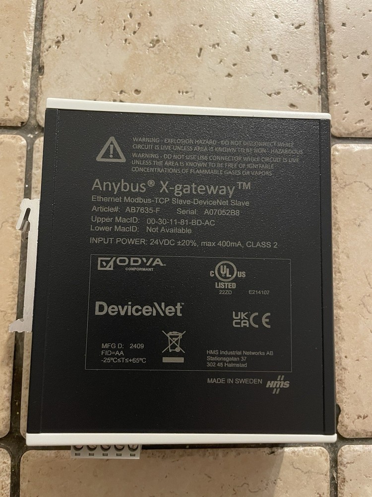The Anubus X-gateway Model AB7635-F Serial A07052B8 is an industrial protocol converter designed for use in PLC and motion control systems. Manufactured by Anybus, this product is capable of converting messages between different industrial communication protocols, ensuring seamless integration between various devices in a control system. With its reliable brand reputation and specific model designation, this protocol converter provides a reliable and efficient solution for industrial automation applications. 100% Guaranteed to work as intended with proper installation