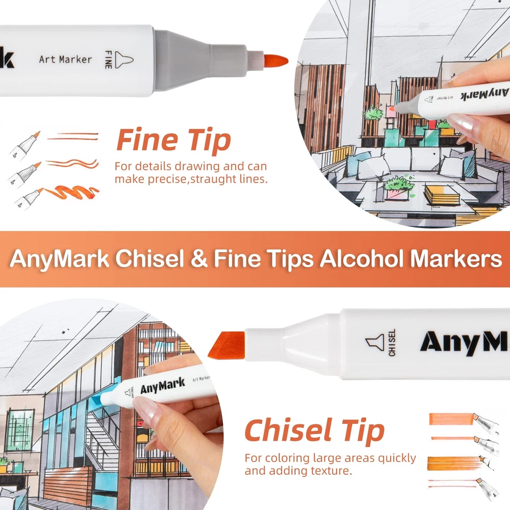 Rich Vibrant Colors: Dive into 100 vibrant alcohol markers tailored for artists at any stage. Effortlessly blend using our colorless blender for boundless creative expression. Unleash your inner artist with our premium markers today! Chisel & Fine Dual Tips: AnyMark art markers are designed with a unique dual-tip that offer versatility and precision in one marker.The broad chisel tip (1-6mm) is perfect for quick coverage, while the fine bullet tip (1-2mm) allows for details. You can effortlessly switch between broad strokes and fine details, making your creative process smoother and more enjoyable! Easy to Organize: AnyMark alcohol markers set comes with a base tray at the bottom of the case that allows each marker to be stored independently.Equipped with a high-quality black carrying case perfect for traveling and storing.Say goodbye to messy workspaces and hello to a more efficient creative process! Alcohol-Based Ink: The alcohol markers feature high-quality ink that is quick-drying, smooth, allowing you to achieve beautiful coloring effects with ease. Each marker comes with a color-coded cap, making it easy to identify colors. Plus, the caps keep the tips from drying out, ensuring your markers are ready to use when inspiration strikes. Give the gift of endless possibilities for kids,students,friends with AnyMark alcohol markers! Perfect Gift : AnyMark alcohol markers set is the perfect gift, fusing creativity and versatility for artistic expression. Perfect for kids, students, adults, families, and friends on occasions like Christmas,Thanksgiving and birthdays. These markers offer vibrant colors, durability, and easy blendability, unlocking artistic potential. Ideal for painting, illustration, or crafting personalized cards, they infuse inspiration into creative pursuits.