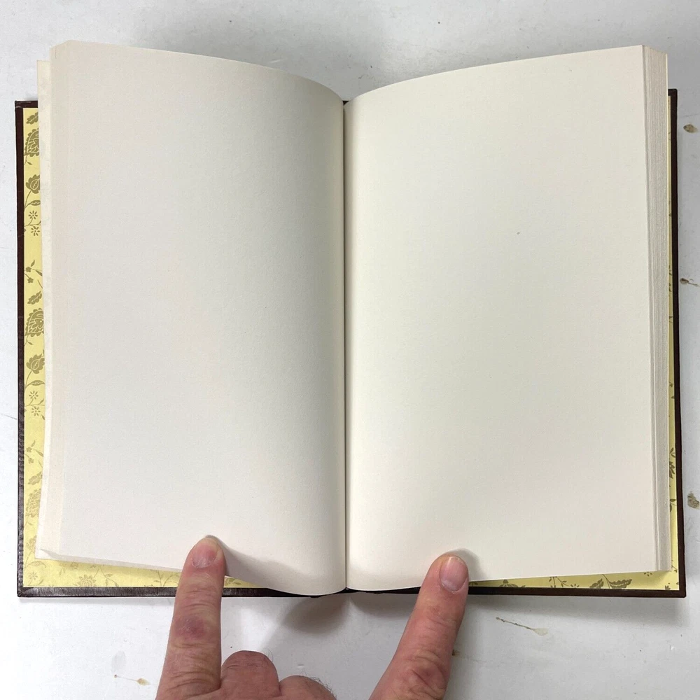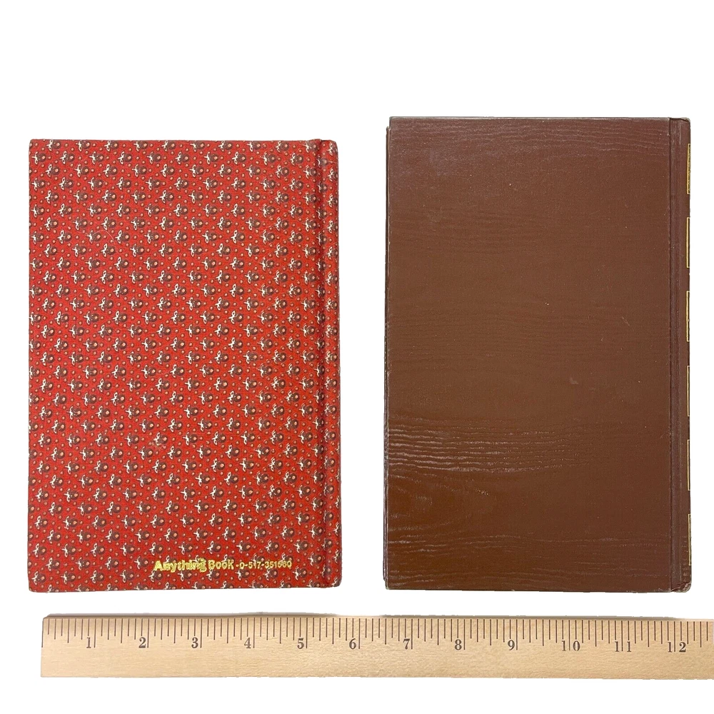 Vintage Blank Journal/Diary -Two (2) Item Bundle "Anything Book" fabric-covered/ w/orig 1980s Macys price tag on interior/ ruled pages Gold-Accented brown cover (moray pattern when light catches it at an angle; w/floral end papers/ un-ruled see pics for scale heavy- over 1Lb combined books are un-used, been in storage for several decades; only minor cosmetic wear/ brown covered one has a small surface abrasion within the front pages where a label was removed