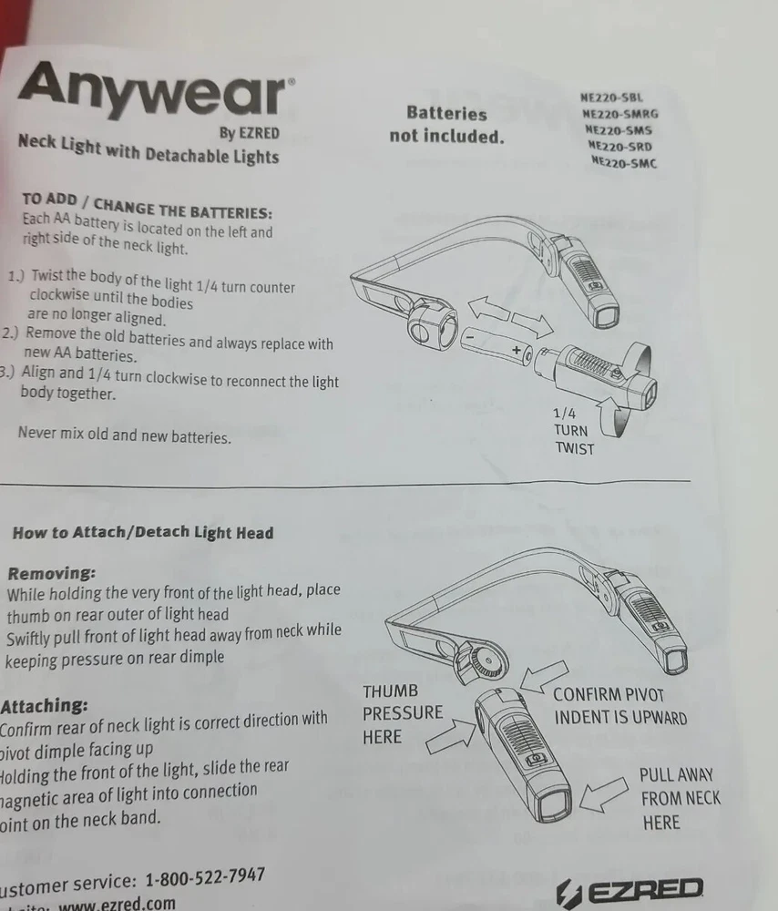 Anywear by Ezred Red Neck Light Detachable Lights Versatile NE220-SRD New.