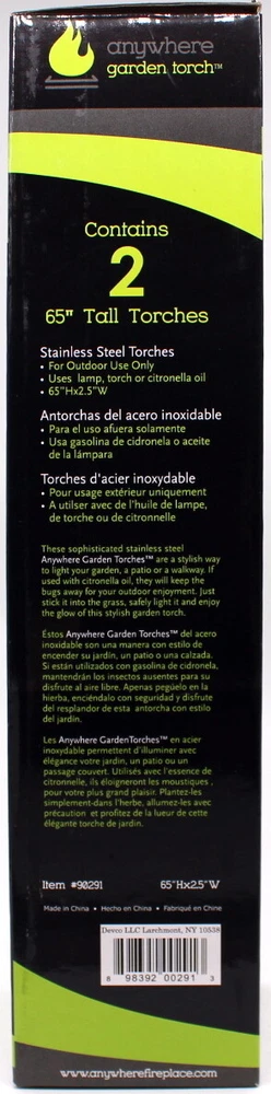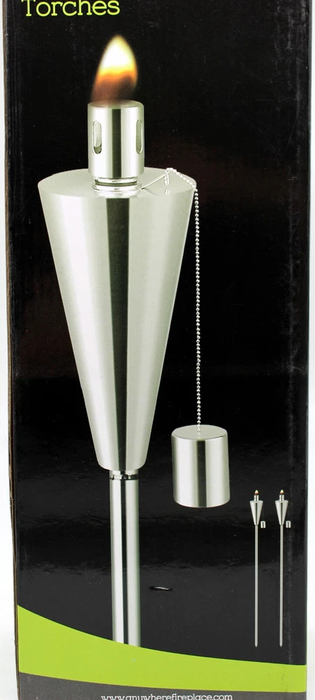 Anywhere Fireplace Tall Plated Stainless Steel Garden Torch Set of 2 New in Box