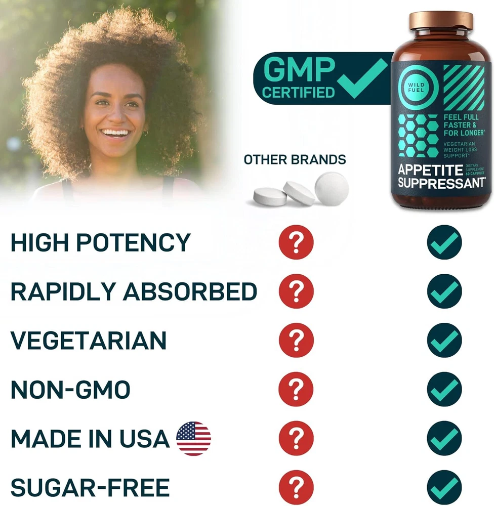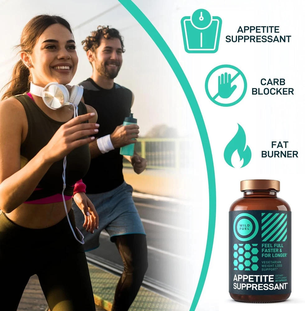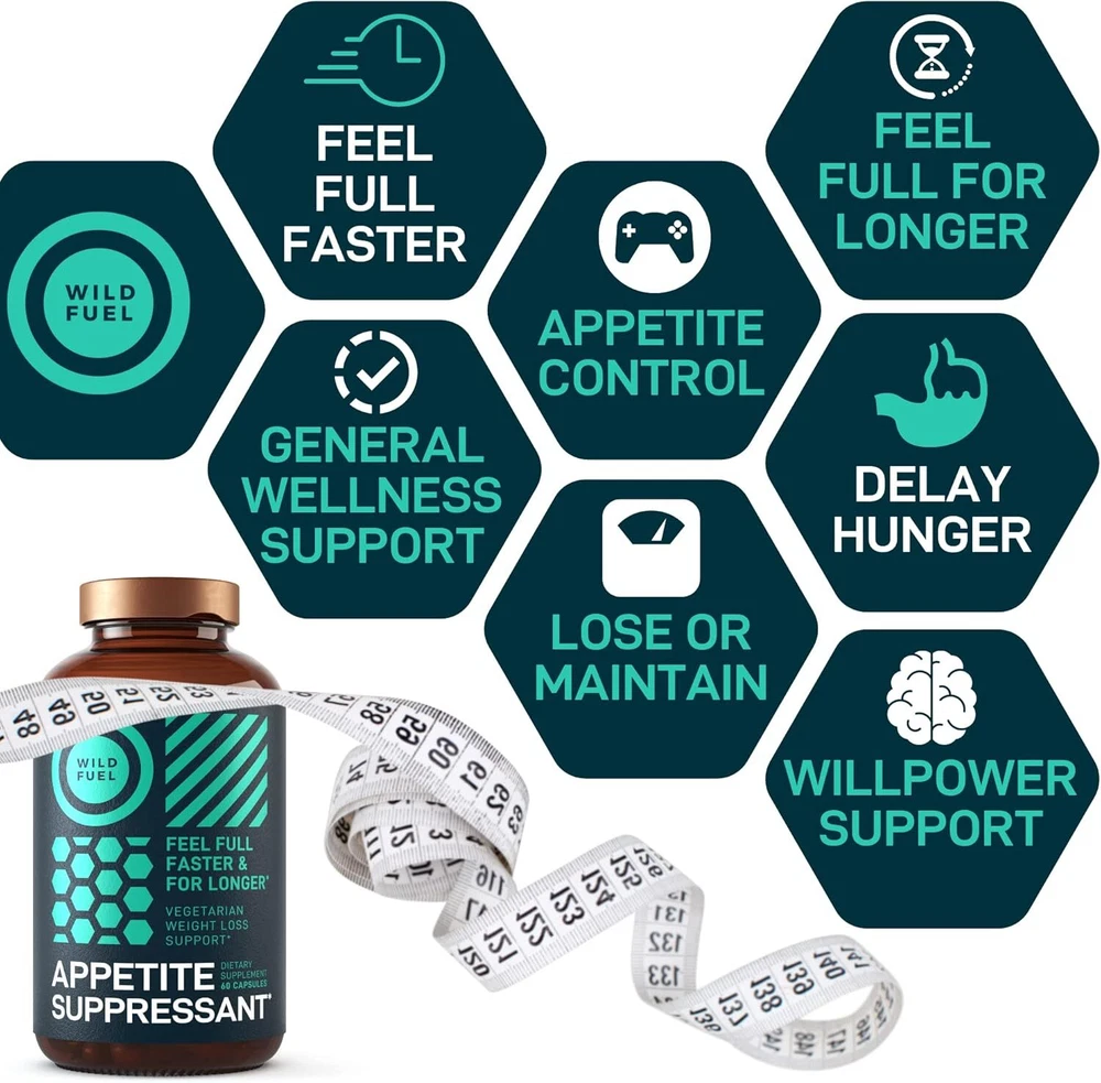 Appetite Suppressant for Weight Loss, Hunger Suppressant - Diet Pills That Work Fast for Women and Men - Garcinia Cambogia, Glucomannan, White Kidney Bean Carb Blocker and Fat Burner - 60 Veggie Caps Product Details Package Dimensions : 4.21 x 1.81 x 1.73 inches; 2.4 ounces Manufacturer : Wild Fuel Brand: WILD FUEL Flavor: Unflavored Unit Count: 60.00 Count Item Form: Capsule Item Weight: 2.4 ounces Product Benefits: Weight Loss. Make you feel full faster on less food. As a result, you take in fewer calories and lose weight Weight Loss. Make you feel full faster on less food. As a result, you take in fewer calories and lose weightWeight Loss. Make you feel full faster on less food. As a result, you take in fewer calories and lose weight See more Age Range (Description): Adult Package Information: Bottle Number of Items: 1 Servings per Container: 30 Beyond normal appetite products. Unlike a regular diet pill, these appetite control triple-action supplements aid fast weight loss for women and men and support maintaining a healthy weight. Feel full faster. These glucomannan capsules contain a dietary fiber extract that absorbs liquid like a sponge. May promote feelings of fullness, help appetite control, and delay feelings of hunger. Feel satisfied for longer. Garcinia cambogia weight loss pills for men and women can slow the production of the hunger hormone, ghrelin, acting as a natural hunger suppressant. Overcome cravings. These weight loss pills for women and men contain lean bean and serotonin-boosting garcinia cambogia and artichoke. This can help you make better dietary choices and lose weight. Fall back in love with food. Small, easily swallowed, and rapidly absorbed natural weight loss supplement. Rapidly absorbed suppressants for weightloss and breaking the bad diet choices cycle.