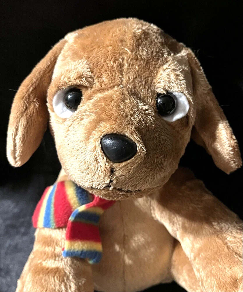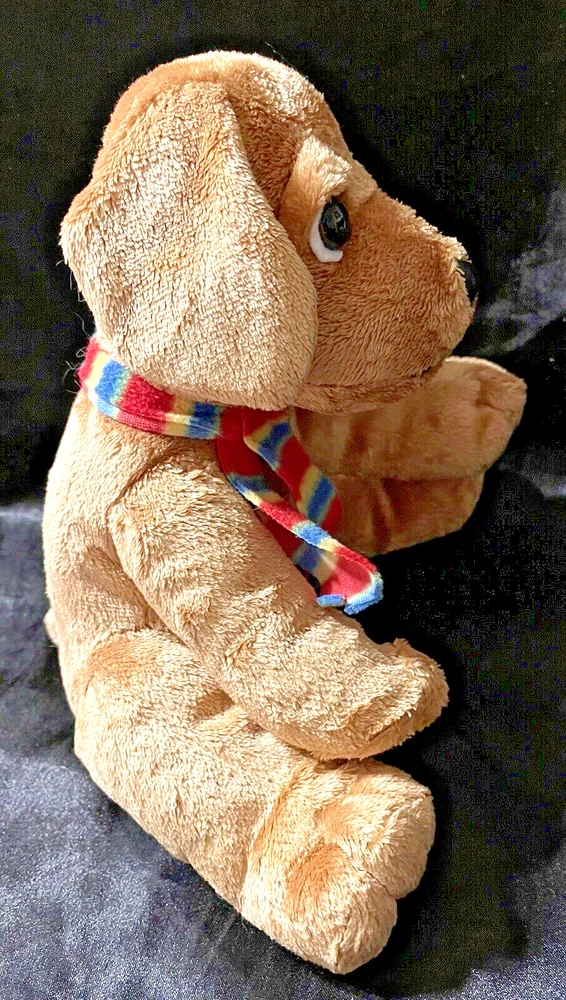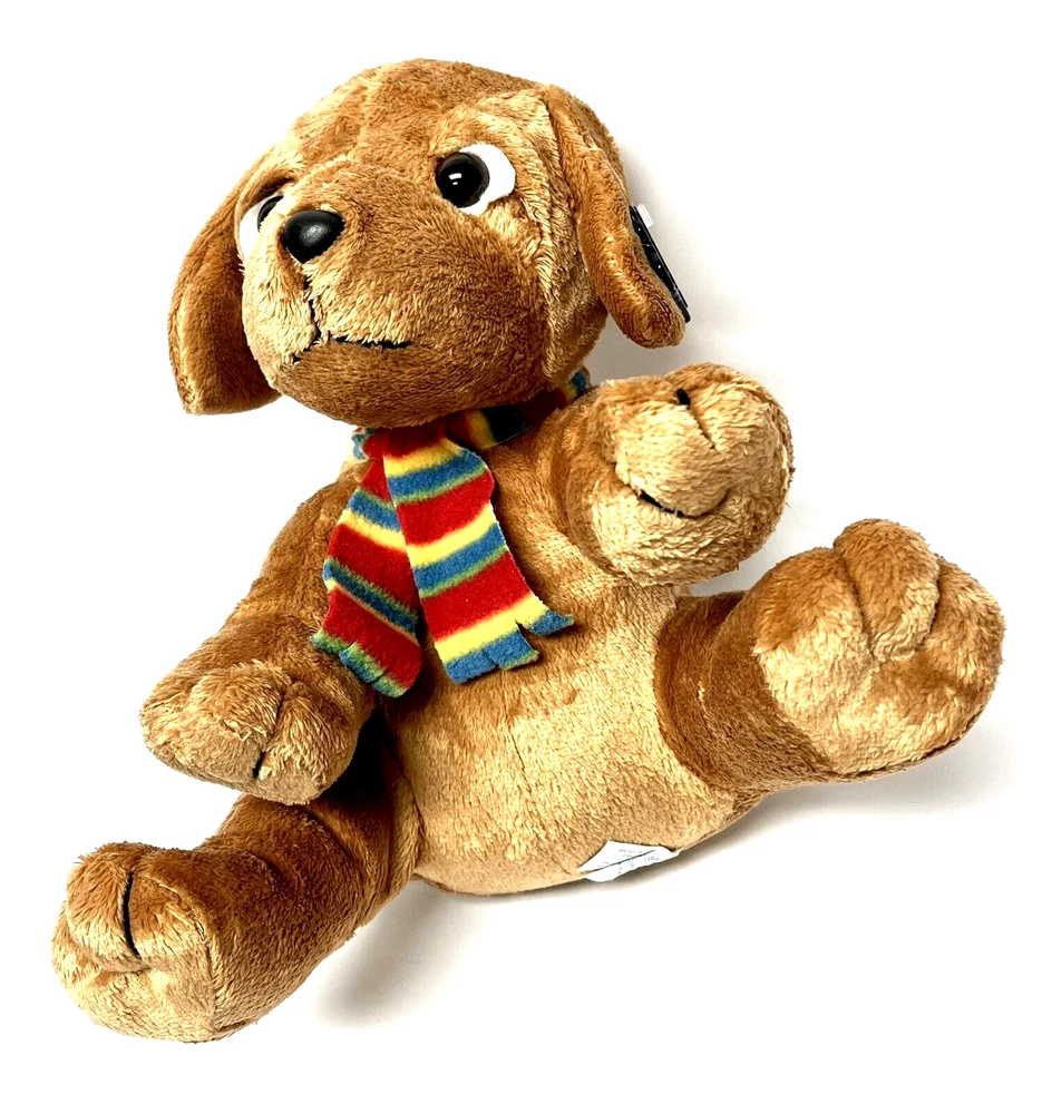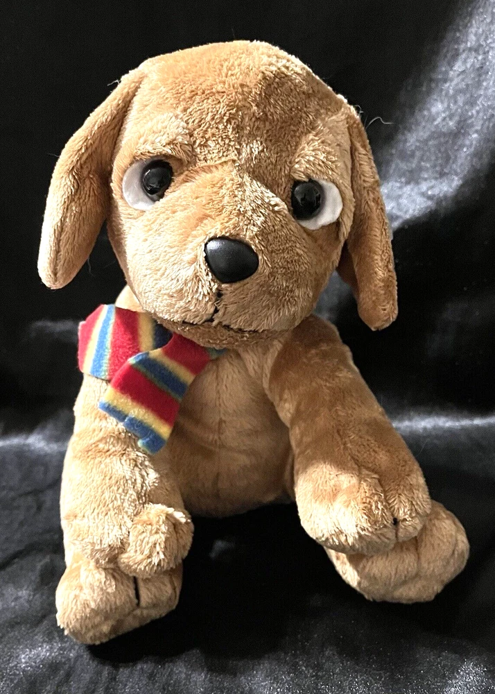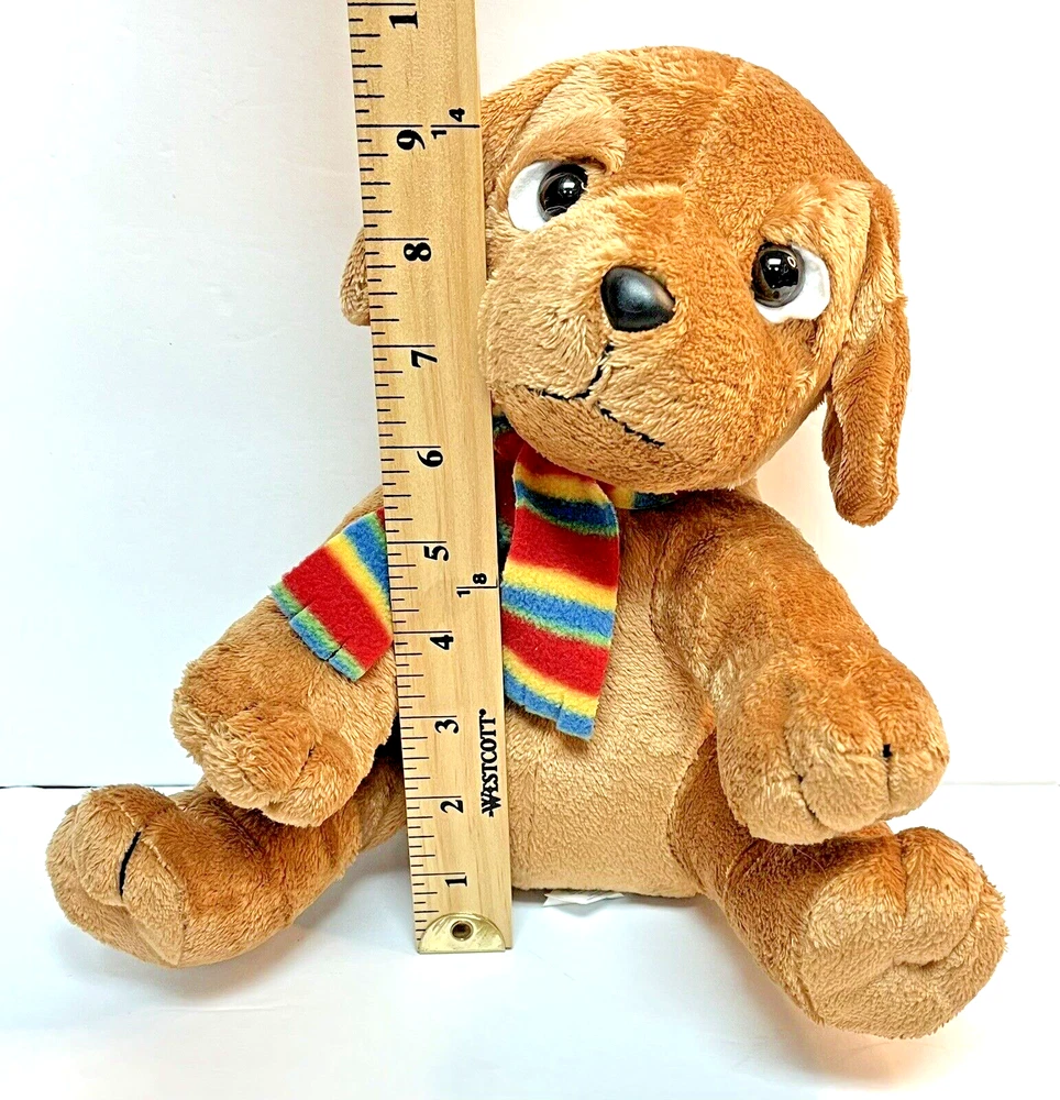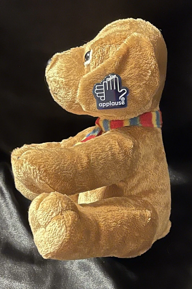 Applause Russ Berrie Plush Puppy Dog Stuffed Multicolorded Scarf 10 " tall in sitting position Dog is in sitting position-does not stand naturally CONDITION Pre-owned Good condition, eyes are not scratched See pictures for details Please contact us with any questions or concerns. Thanks!