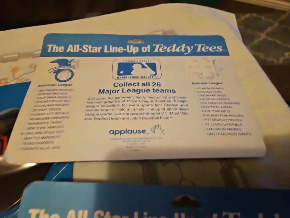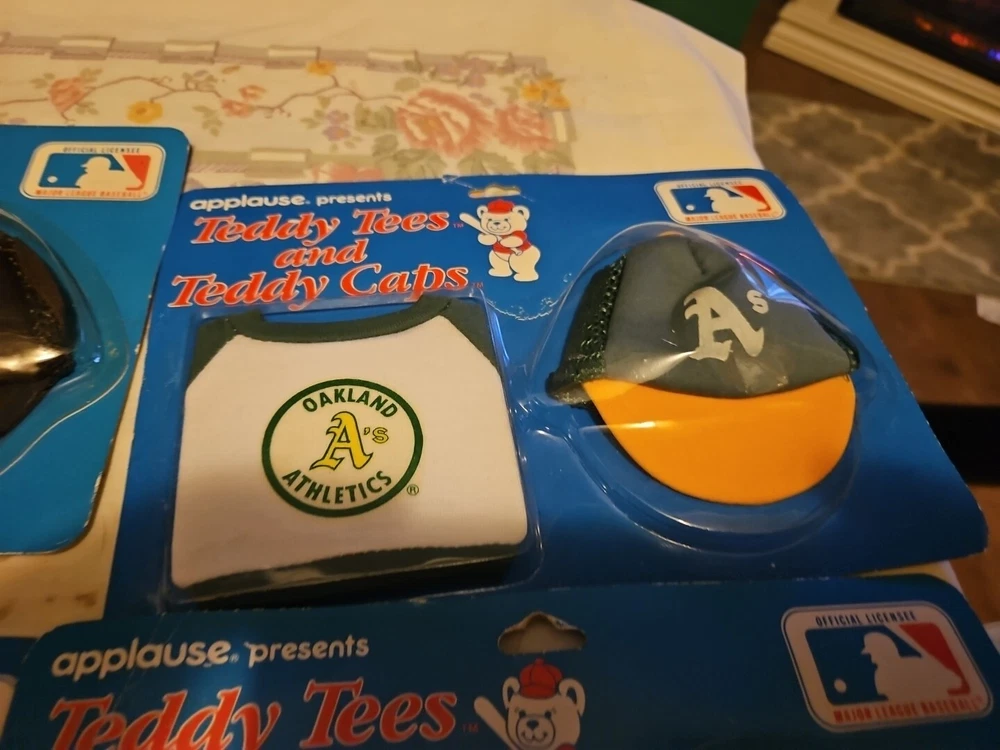 gtin13:Does not applySize:Small Teddy Bear SizeModified Item:NoLeague:Major League (MLB)Product:Teddy Bear Shirt and CapSport:Baseball-MLBTeam:Oakland AthleticsPlayer:n/aColor:Multi-ColorCountry/Region of Manufacture:ChinaBrand:ApplauseGender:teddy bearPre & Post Season:Regular SeasonUPC:Does not applyCapacity:N/A