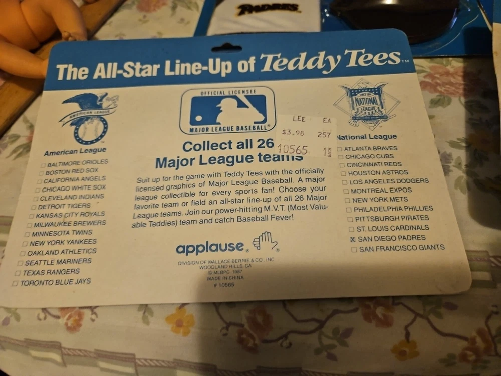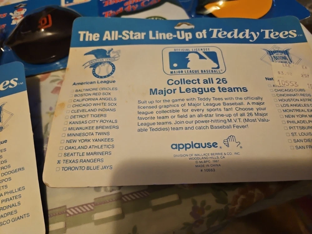 HomeApplause Teddy Tee and Teddy Caps - MLB Baseball Lot Of 4 PADRES,RANGERS Athle