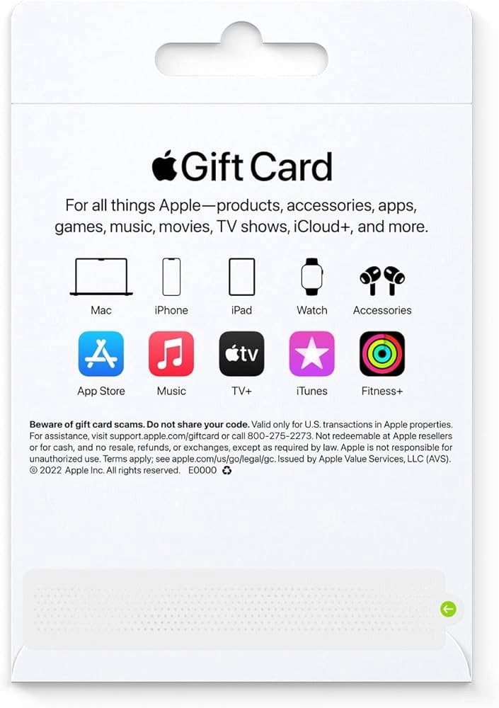 For all things Apple — iPad, AirPods, Apple Watch, iPhone, MacBook, iCloud, accessories, and more Perfect for App Store purchases and subscriptions — get apps, games, music, movies, TV shows, and more The ideal gift to say happy birthday, thank you, congratulations, and more Designs may vary