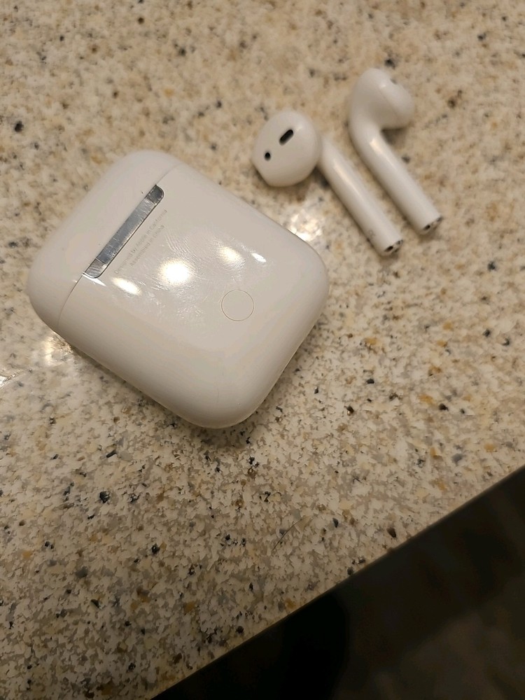 The Apple AirPods 1st Generation Model A1523 with Charging Case is a set of white wireless earbuds designed by Apple. The earbuds feature a sleek in-ear design and come with a built-in microphone for convenience. They use Bluetooth technology for connectivity and are perfect for those looking for a comfortable and easy-to-use option for their everyday tech needs. The included charging case makes it easy to store and charge the earbuds on the go.