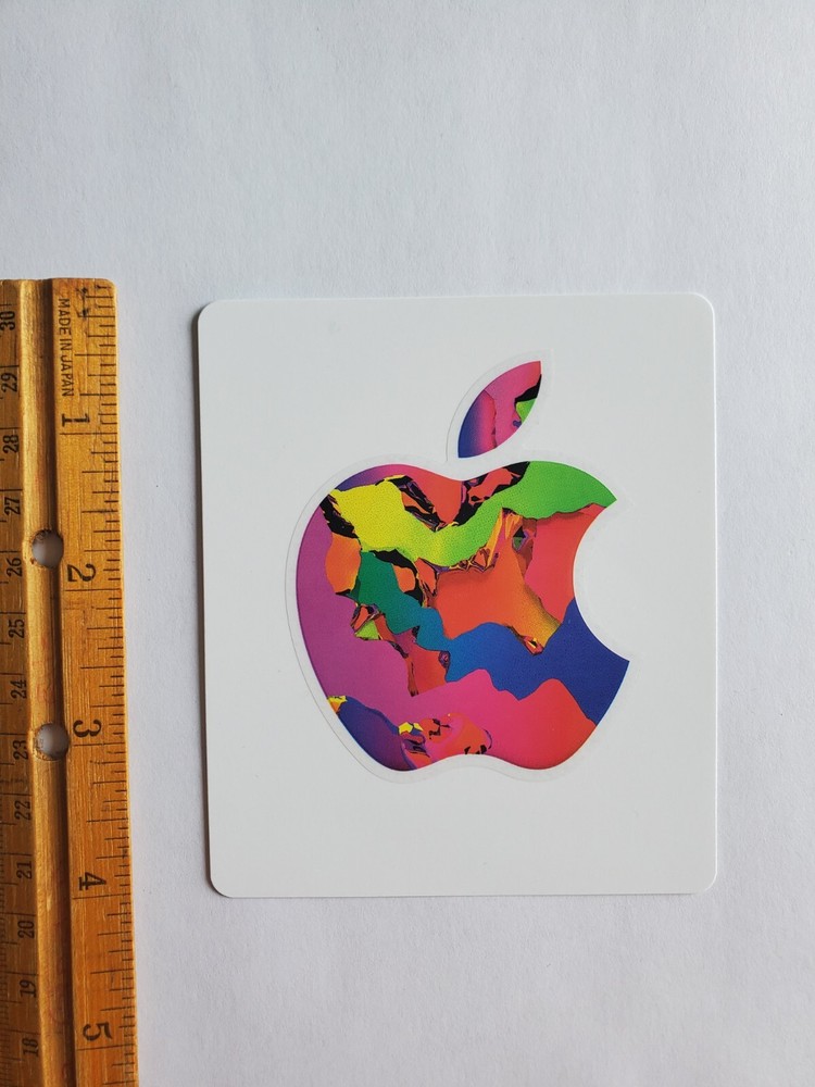 Groovy design and authentic Apple...Apple Logo Sticker from Apple Gift Cards - NEW. About 3 inches up and down and about 2 inches across. Great for computer details, wall decor, and anywhere else you'd use a sticker