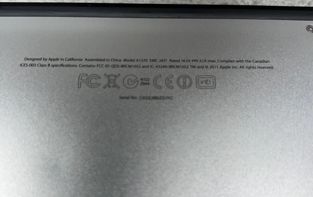 Features: Bluetooth, Built-in Microphone, Built-in Webcam, Multi-Touch Trackpad, Wi-Fi Series: MacBook Country/Region of Manufacture: China Processor Speed: 1.60 GHz Most Suitable For: Casual Computing Item Height: 0.68" Graphics Processing Type: Integrated/On-Board Graphics Item Weight: 2.38 lb gtin13: N/A Item Width: 7.56" Storage Type: SSD (Solid State Drive) Connectivity: Mini DisplayPort, USB 2.0 Type: MacBook Air UPC: N/A RAM Size: 128 GB MPN: A1370 Release Year: 2011 Screen Size: 11.6 in Operating System: None GPU: Intel HD Graphics 3000 Processor: Yes Maximum Resolution: 1366 x 768 Brand: Apple Color: Silver Model: A1370 Item Length: 11.8"