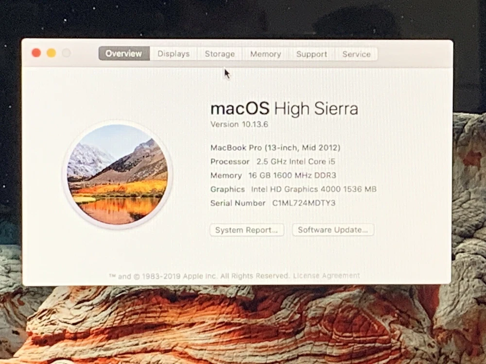 Brand: Apple Item Length: 8.94 inches (22.7 cm) Item Width: 12.78 inches (32.5 cm) Item Height: 0.95 inch (2.41 cm) Operating System: macOS 10.13, High Sierra Item Weight: 4.5 pounds (2.06 kg)2 gtin13: Does not apply RAM Size: 16 GB Color: Silver GPU: Intel HD Graphics 4000 Hard Drive Capacity: 1 TB Features: Backlit Keyboard, Bluetooth, Built-in Microphone, Built-in Webcam, Optical Drive, Wi-Fi UPC: Does not apply Release Year: 2012 Most Suitable For: Casual Computing, Graphic Design Connectivity: DisplayPort, SD Card Slot, USB 3.0, VGA Model: Core i5 Series: MacBook Pro Processor: Intel Core i5 3rd Gen. Type: MacBook Pro Storage Type: HDD (Hard Disk Drive) MPN: none Graphics Processing Type: Integrated/On-Board Graphics Screen Size: 13.3 in Maximum Resolution: 1280 x 800 Processor Speed: 2.5 GHz SSD Capacity: 1 TB