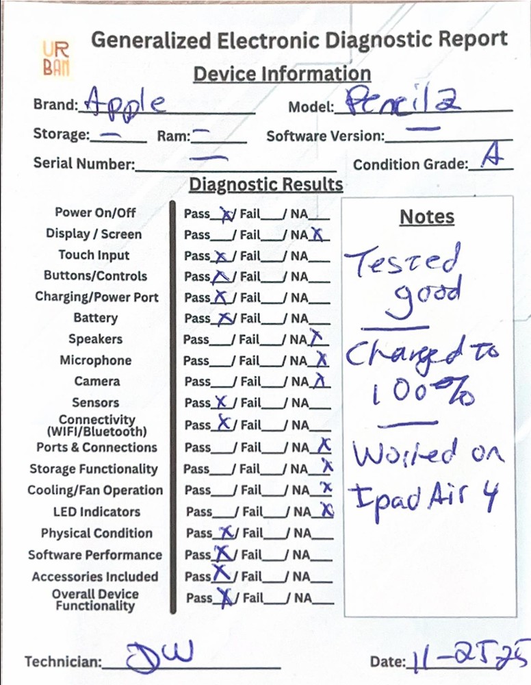 Condition: Like New Tested and functions properly. No damage. Like new. Apple Pencil (2nd Generation) gives pixel-perfect precision and fast, responsive performance. Draw, take notes, sketch, and mark up documents with ease. This stylus features a flat edge. It attaches magnetically for secure storage and easy access. No wires or connectors are needed for pairing or charging. The Apple Pencil snaps to your iPad and pairs instantly once attached. Charging starts automatically. Designed for comfort, the touch surface responds to a simple double tap. Easily switch editing tools while you work. This feature is helpful for artists and designers. You work faster and avoid interruptions. Its pressure and tilt sensitivity let you vary line thickness. Shade and sketch naturally. Every stroke feels real, just like using pen and paper. Whether jotting notes or drawing illustrations, the stylus reacts to your movements. Apple Pencil (2nd Generation) works with select iPad models. Supported models include iPad Pro 11-inch (1st, 2nd, 3rd, 4th gen), iPad Pro 12.9-inch (3rd, 4th, 5th, 6th gen), iPad Air (4th and 5th gen), and iPad mini (6th gen). Always check which iPads work with this stylus by visiting Apple’s official compatibility page. Take your creativity higher. The Apple Pencil unlocks advanced features in many iPad apps. Try note-taking, digital art, and PDF markup. Work projects and study sessions feel smoother with precise tool control and real-time feedback. Your stylus charges directly from the iPad. A full charge powers up to 12 hours of use. If you’re in a rush, a short charge gives you hours of work. No cables needed; just attach it to the side of your iPad. Choose Apple Pencil for a seamless digital experience. Professionals, artists, and students all appreciate its reliability and comfort. Your iPad becomes a flexible, powerful tool ready for school, business, or personal use. Our stylus is inspected for quality. You receive a product that is like new, with no visible marks or wear. Upgrade your creative workflow or boost your productivity. The Apple Pencil offers unmatched performance. Check out our Personal Care Collection for related devices and accessories.