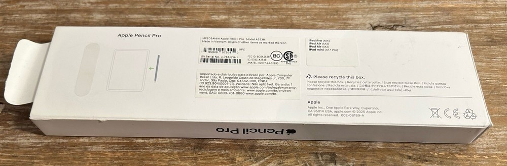 Model:Apple Pencil Pro A2538gtin13:0195949573040Item Height:6.53 inMaterial:Rigid PlasticMPN:MX2D3AMACompatible Brand:For AppleUPC:0195949573040GTIN:0195949573040Type:ActiveBrand:AppleCompatible Model:For Apple iPad Air (1st Generation), For Apple iPad Air (3rd Generation), For Apple iPad Air (4th Generation), For Apple iPad Air (5th Generation), For Apple iPad Air 2, For Apple iPad Pro (1st Generation), For Apple iPad Pro (2nd Generation), For Apple iPad Pro (3rd Generation), For Apple iPad Pro (5th Generation), For Apple iPad Pro (6th Generation)Color:WhiteFeatures:Anti-Scratch, Battery Powered, Bluetooth, Designer, MagneticCompatible Screen Size:11 in, 12.9 in
