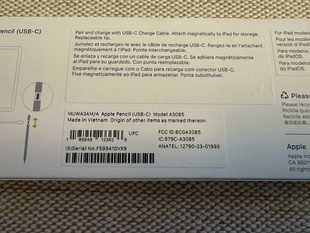 The Apple Pencil USB-C Stylus for iPad in White is an OEM genuine product by Apple, designed specifically for Apple iPads. It features Bluetooth connectivity and can be powered by USB. The stylus is compatible with various iPad models and screen sizes, offering a 1-year manufacturer warranty. Ideal for precise writing, drawing, and navigating on your iPad, this stylus combines convenience and functionality in a sleek and stylish design.
