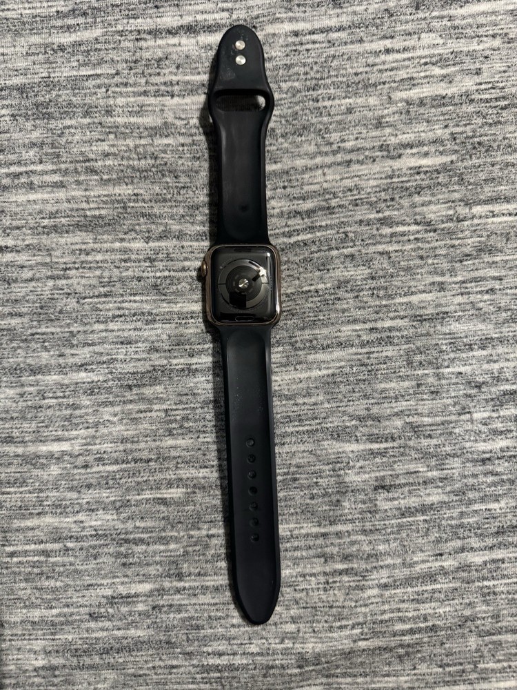 Experience the pinnacle of smartwatch technology with the Apple Watch Series 4, boasting a sleek 44mm stainless steel case and a sophisticated black silicone band. This watch is designed to keep you connected and on track with essential features like Bluetooth connectivity, Wi-Fi capability, and GPS. The vivid AMOLED display ensures clear and vibrant visuals, perfect for tracking your fitness goals with the built-in heart rate monitor and ECG capabilities. With 16GB of storage, you have ample space for music, apps, and photos. Enjoy the convenience of wireless charging and a long-lasting battery that keeps up with your active lifestyle. Whether you're in the gym or on the go, the Apple Watch Series 4 is an indispensable companion for iOS users looking to stay ahead of the curve. Apple Watch Charger not included.