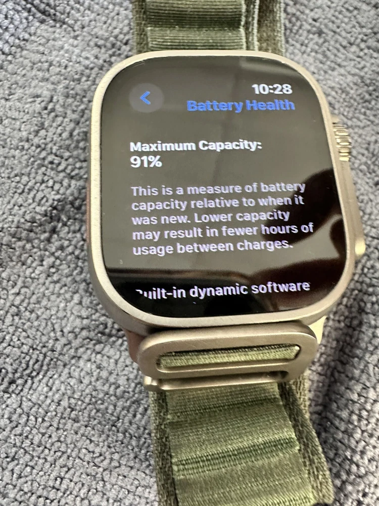 Lightly used Ultra 1 91% battery capacity Come with 1 band and charger.