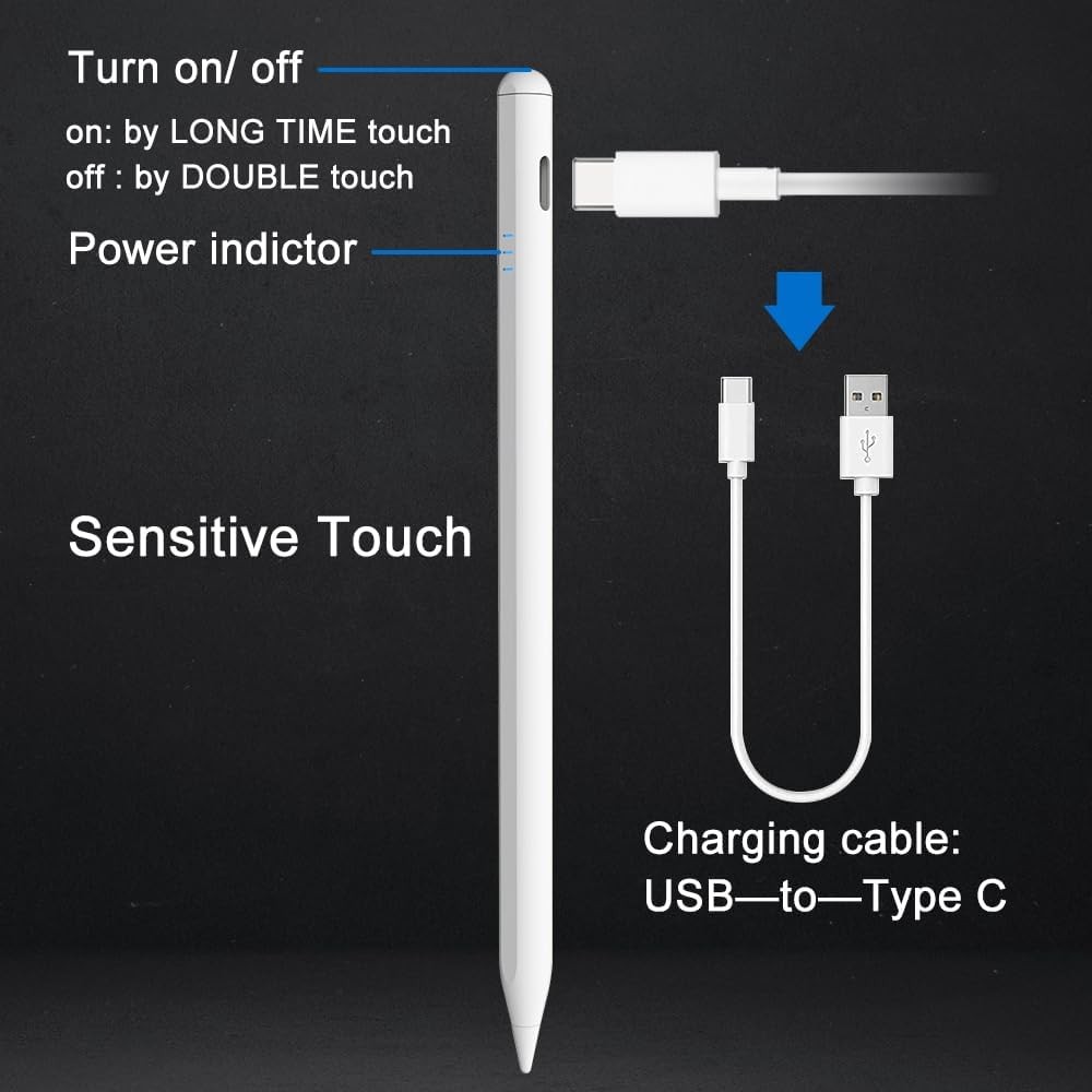 This stylus pencil is a game-changer for my iPad! The palm rejection works flawlessly, making note-taking and drawing so smooth. I love how easy it is to turn on/off with just a tap or long press, and the 12-hour battery life is impressive. The 1.5mm tip feels precise, and the white design looks sleek with my iPad. Charges fast tooβhighly recommend for anyone needing a reliable, budget-friendly alternative to the Apple Pencil!