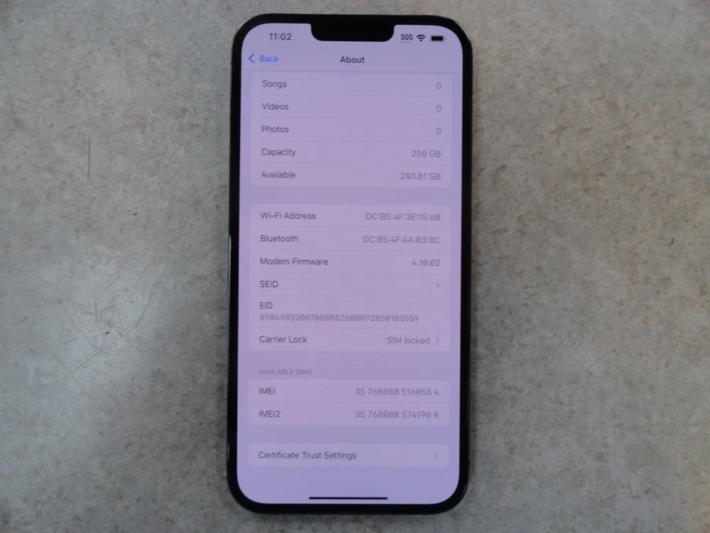 RAM: 6 GB Seller Notes: “Mint condition. No scratches or blemishes. No locks or issues. See pictures for details.” Network: AT&T No accessories: Yes Model: Apple iPhone 13 Pro Max Cosmetic condition: Excellent Brand: Apple Connectivity: Lightning, NFC, Glonass, GPS, Bluetooth, Wi-Fi, Galileo Chipset Model: Apple A15 Bionic (5 NM) Operating System: iOS Lock Status: Network Locked Storage Capacity: 256 GB Color: Silver Processor: Hexa Core Camera Resolution: 12 MP