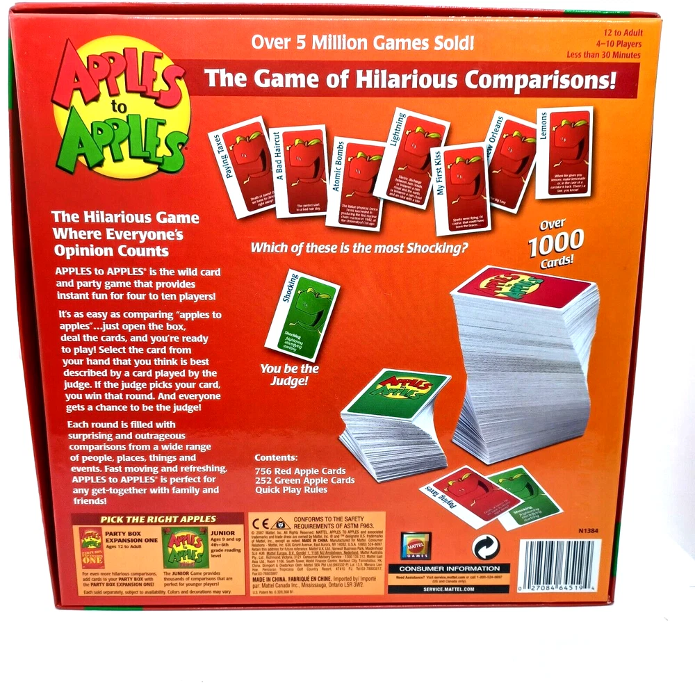 Get ready for a night of laughs with the Apples to Apples Party Box Card Game. This hilarious game is perfect for family game night or a fun-filled evening with friends. With over 1,000 cards to choose from, players will have a blast making comparisons between the cards and arguing over which one is the best fit. This card game is designed for at least 4 players and is suitable for ages 12 and up. The game comes in a sealed box and includes cards featuring various themes and topics. So, gather your friends and family, and get ready to laugh until you cry with the Apples to Apples Party Box Card Game!