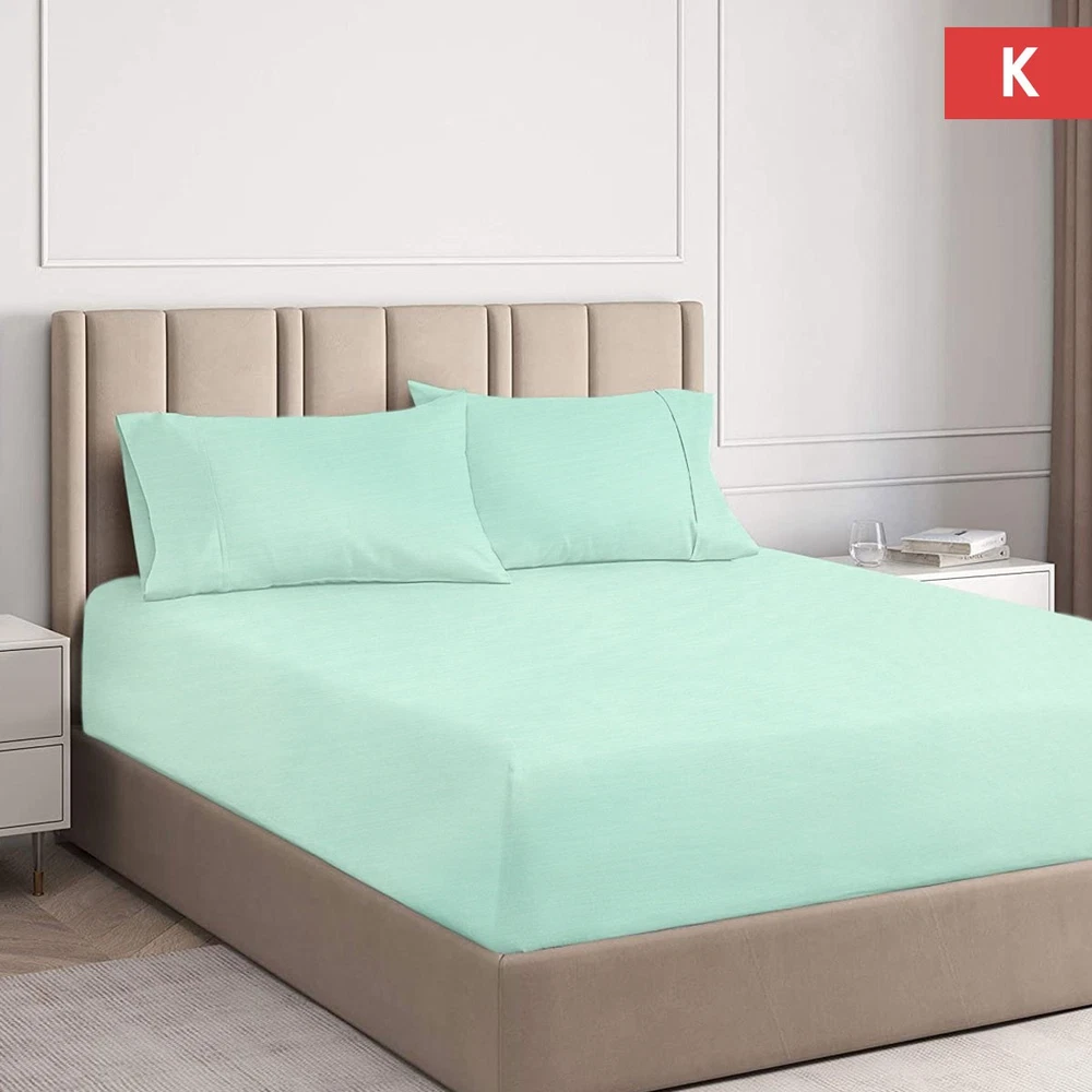 Aqua 2000TC Cooling Bamboo Combo Set by Ramesses The Aqua 2000TC Cooling Bamboo Combo Set by Ramesses offers the perfect blend of luxury and comfort. Bamboo sheets are known for its incredible softness and durability. It aims to resist stains and wrinkles for easy care. It is eco-friendly, highly absorbent, natural anti-bacterial and hypoallergenic. This will make it suitable for babies and toddlers as well as those adults that suffer from respiratory or skin allergies. The expanding and contracting nature of the fibers will help you stay warm in winter and cool in summer. Go ahead indulge yourself in this natural luxury! Features: Solid colour design 2000 thread count Set Includes: 1 x Fitted Sheet 2 x Standard Pillowcases - 48 x 73 cm (One Pillowcase for Single / King Single) Sizing Information: Single - 91 x 193 + 40 cm King Single - 107 x 203 + 40 cm Double - 137 x 193 + 40 cm Queen - 152 x 203 + 40 cm King - 183 x 204 + 40 cm Mega Queen - 152 x 203 + 50 cm Mega King - 183 x 203 + 50 cm Fabrication: 35 % Bamboo / 65% Polyester Care Instructions: Machine washable See label for detailed instructions before first use Note: Please be aware that while every effort is made to display colours and textures accurately, there may be some variations depending on the settings of your monitor. Please contact us on eBay, if you need further detailed product information. Thank you for viewing our listing, if you have any questions, please message us via ebay messaging center. Note to International buyers: A Quilt Cover is also known as Duvet Cover or Comforter Cover. Shipping: We are more than happy to combine shipping your order, so feel free to browse our listings to save on postage. Feedback: Feedback is appreciated and left for our customers. If you are not totally satisfied with your purchase, please contact us prior to leaving feedback. We are committed to resolving any issue to make you a happy customer.